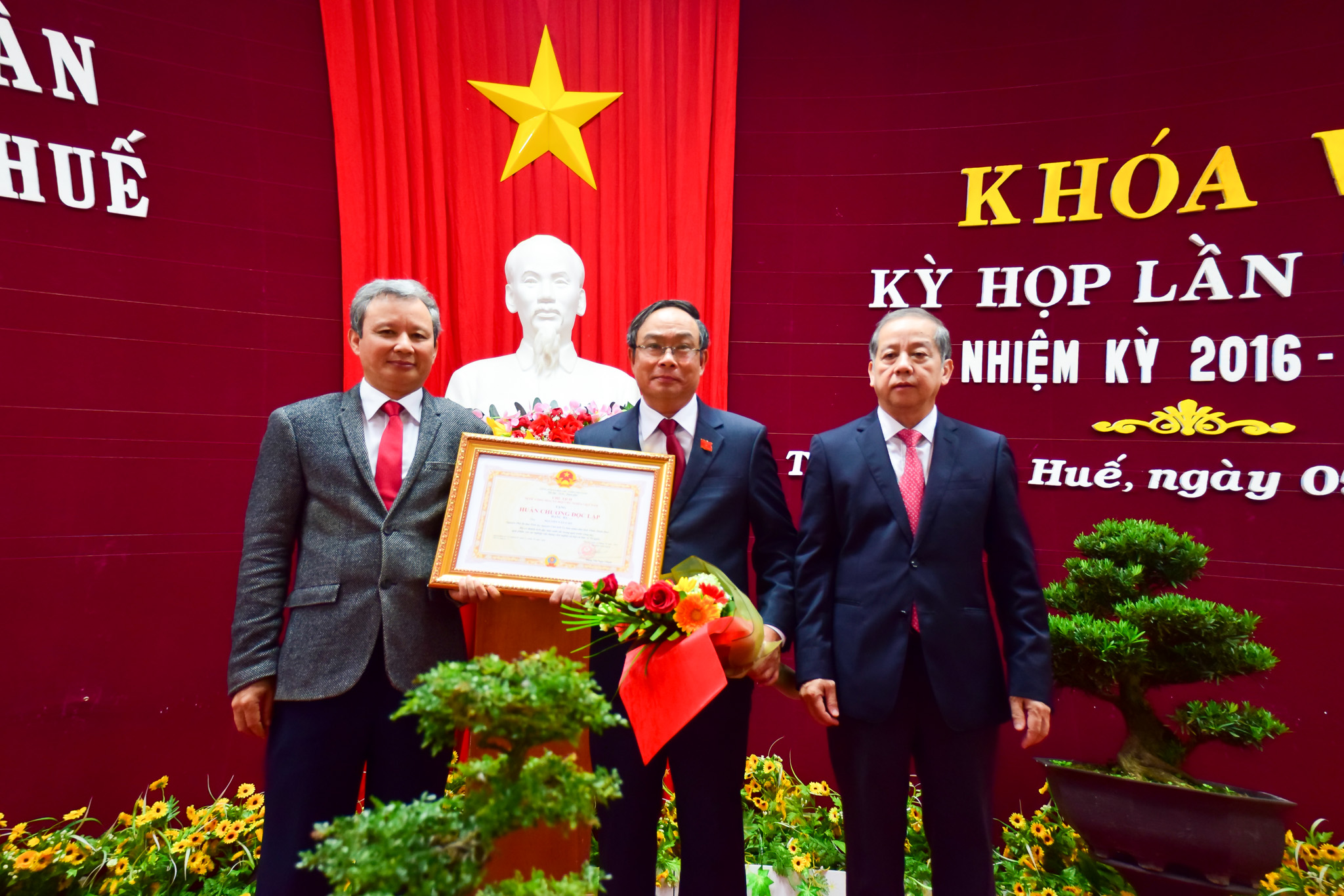 Thừa ủy quyền Chủ tịch nước, Bí thư Tỉnh ủy, Chủ tịch HĐND tỉnh Lê Trường Lưu và Phó bí thư Tỉnh ủy, Chủ tịch UBND tỉnh Phan Ngọc Thọ trao Huân chương Lao động hạng Nhất cho ông Nguyễn Dung, Phó chủ tịch UBND tỉnh và ông Phan Tiến Dũng, Giám đốc Sở Văn hóa và Thể thao; trao Huân chương Lao động hạng Nhì cho Sở Ngoại vụ và trao Huân chương Lao động hạng Ba cho các ông: Nguyễn Thái Sơn, Trưởng ban tuyên giáo Tỉnh ủy; ông Nguyễn Hồng Sơn, Chủ tịch Hội đồng quản trị Công ty CP Môi trường và Công trình đô thị tỉnh Thừa Thiên Huế; ông Dương Đức Huy, Chủ tịch Công ty TNHH NN1TV xổ số kiến thiết Thừa Thiên Huế; bà Võ Thị Xuân Hương, Nguyên Giám đốc Trung tâm trợ giúp pháp lý nhà nước, Sở Tư pháp