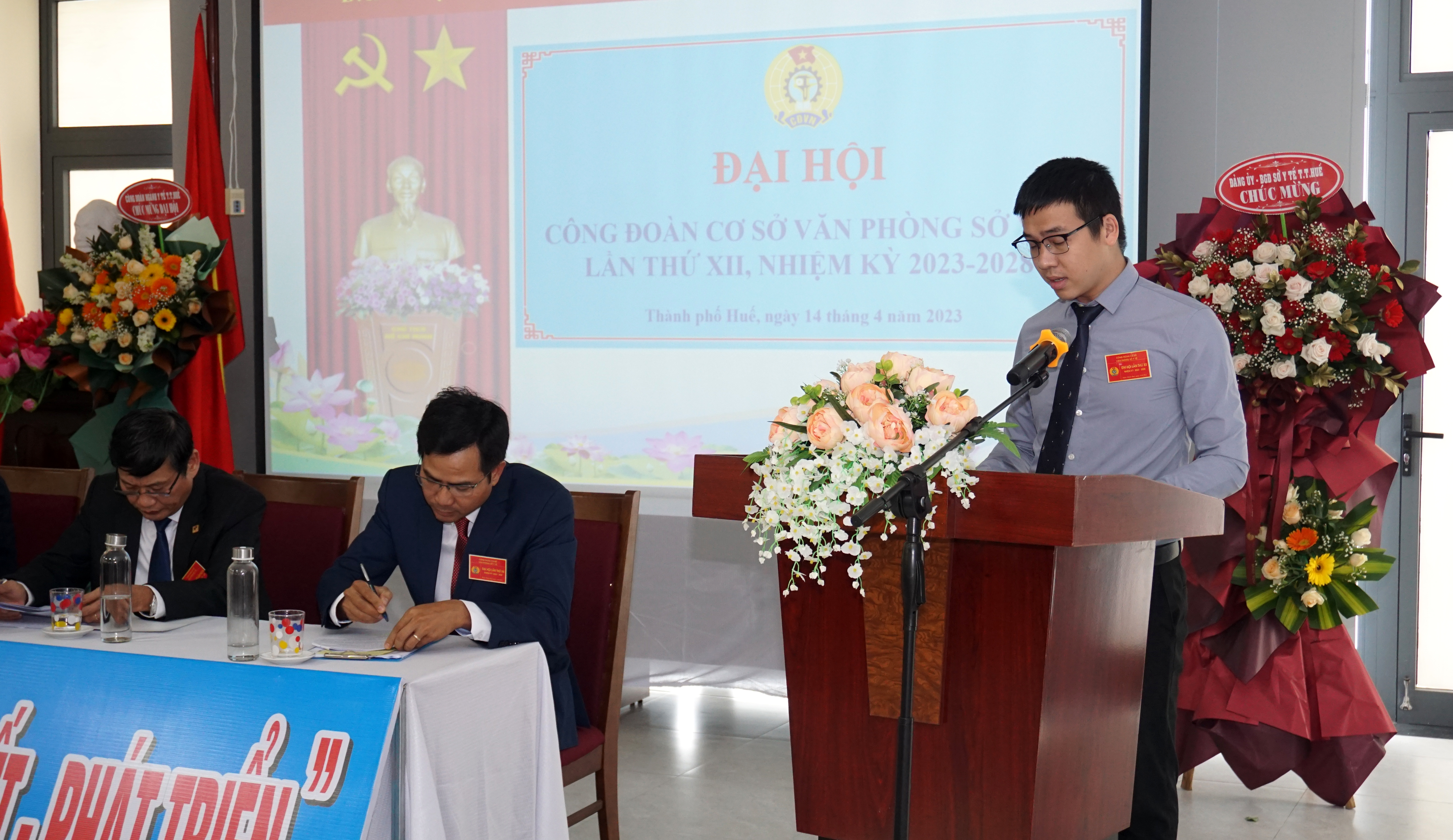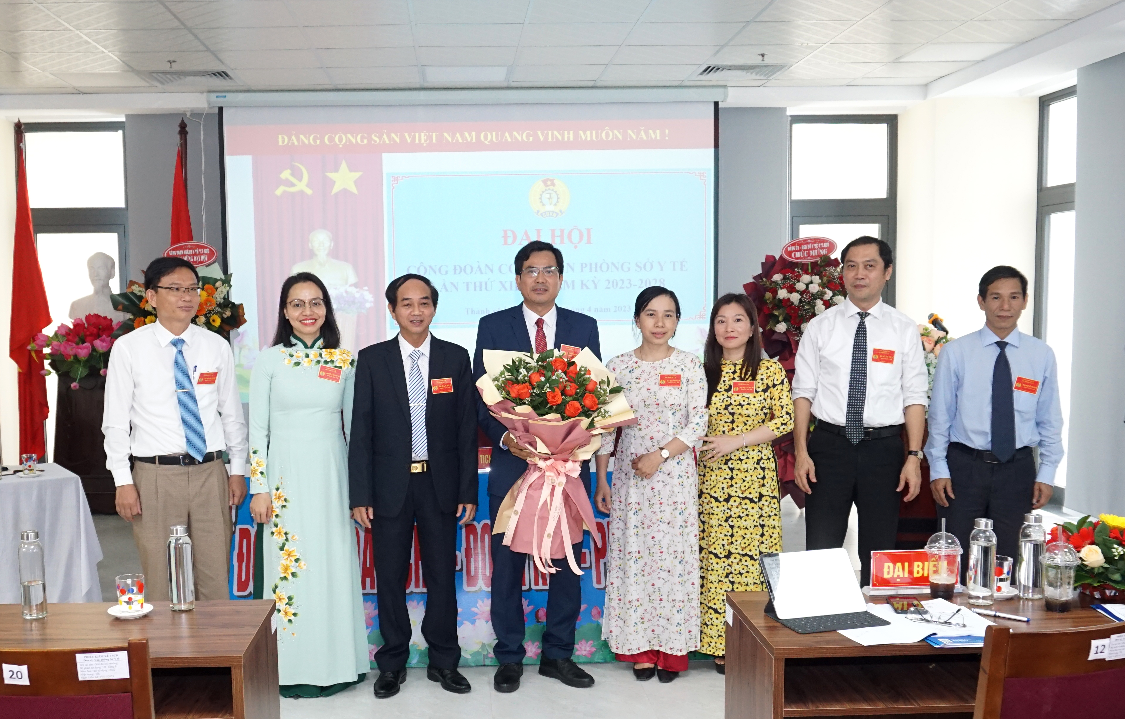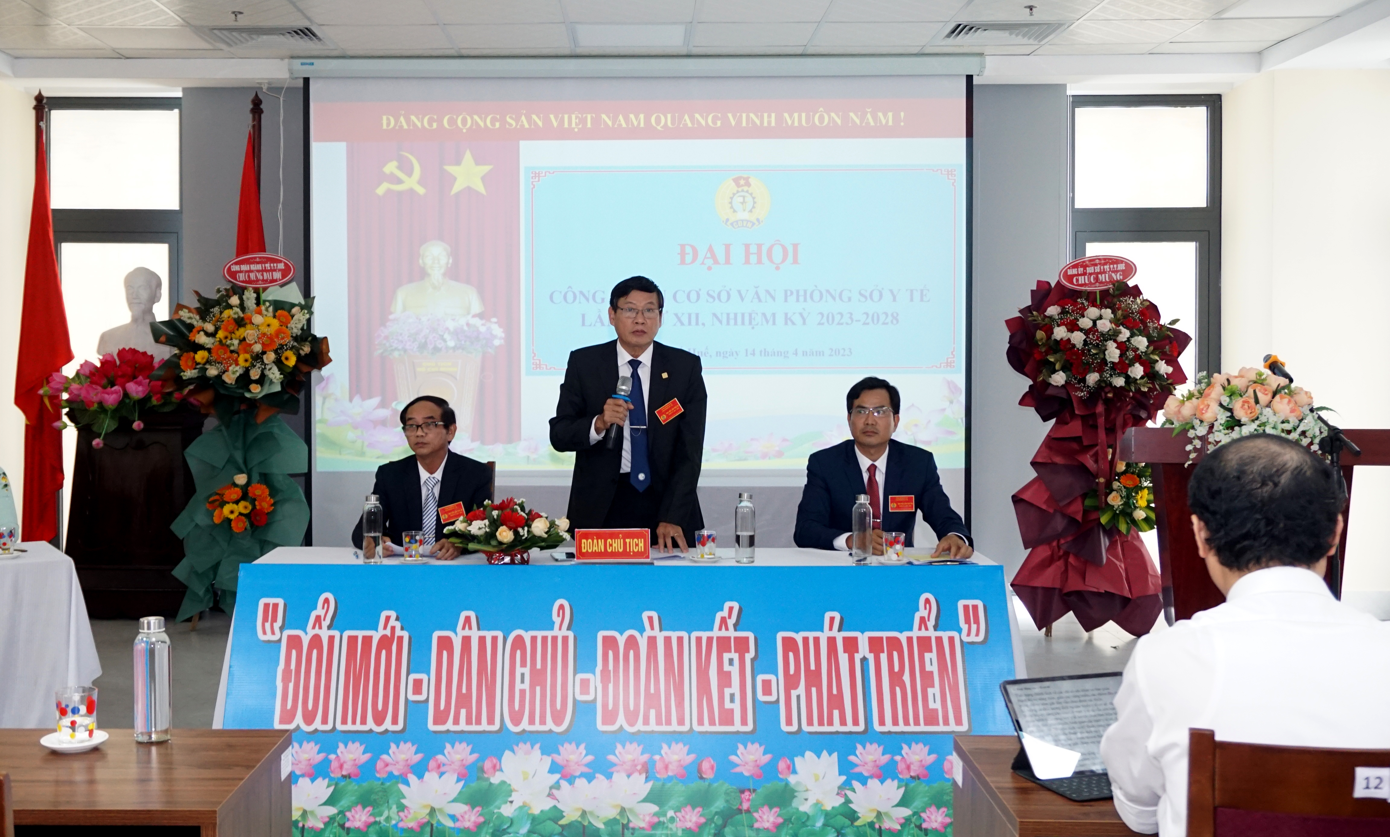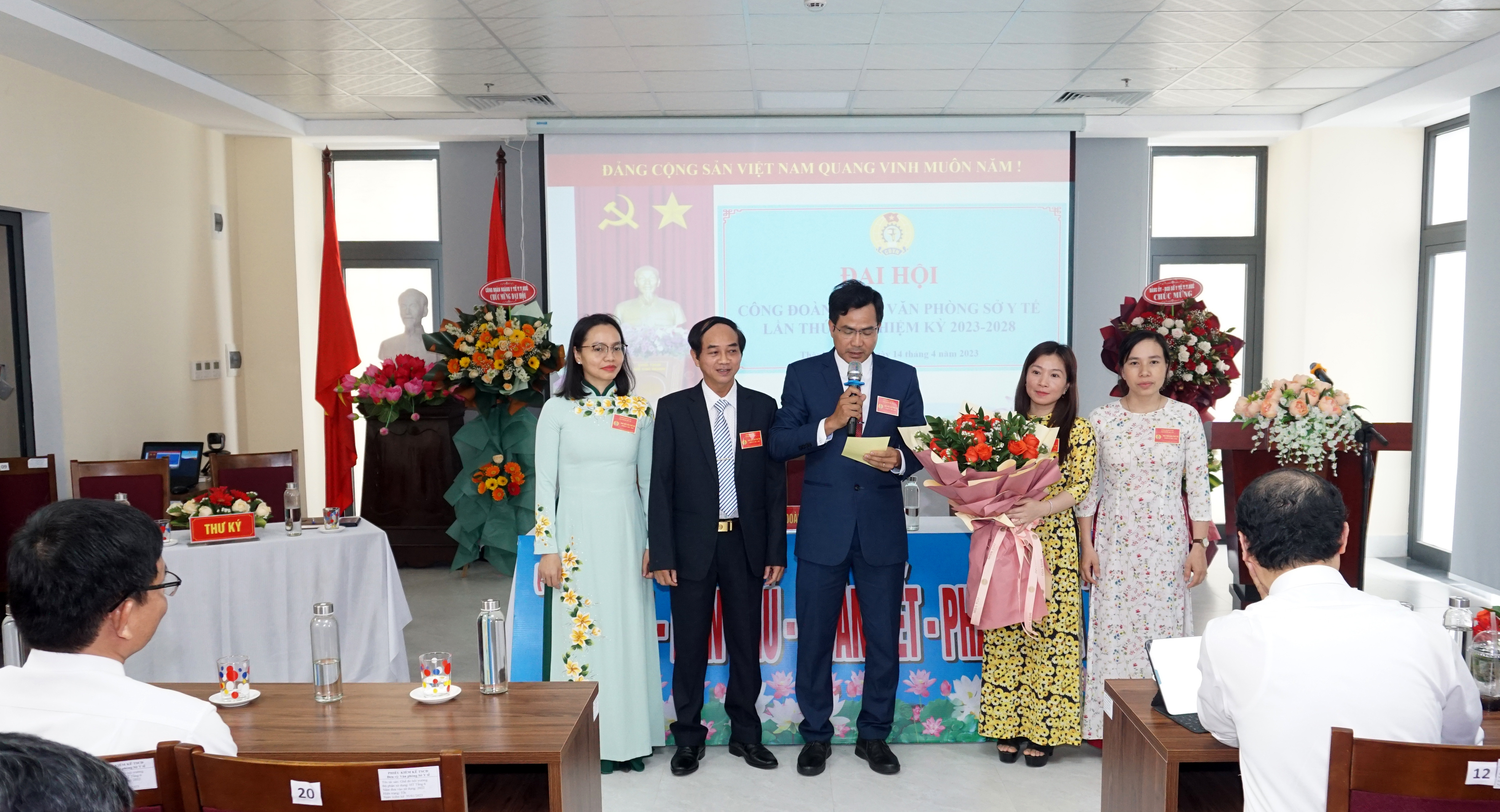 Ngày 14-4-2023, Văn phòng Sở Y tế tổ chức Đại hội Công đoàn cơ sở lần thứ XII, nhiệm kỳ 2023 - 2028. Tham dự và chỉ đạo Đại hội có PGS.TS.BS Trần Kiêm Hảo - Bí thư Đảng ủy, Giám đốc Sở Y tế; DSCKI Lê Viết Bắc - Phó Bí thư Đảng ủy - Phó Giám đốc - Chủ tịch CĐ Ngành Y tế; các đồng chí trong Ban Thường vụ Đảng ủy, Ban Giám đốc Sở, Ban Thường vụ Công đoàn Ngành, Trưởng/phó các Phòng cùng toàn thể công chức, viên chức, người lao động (CC/VC/NLĐ) Văn phòng Sở Y tế.