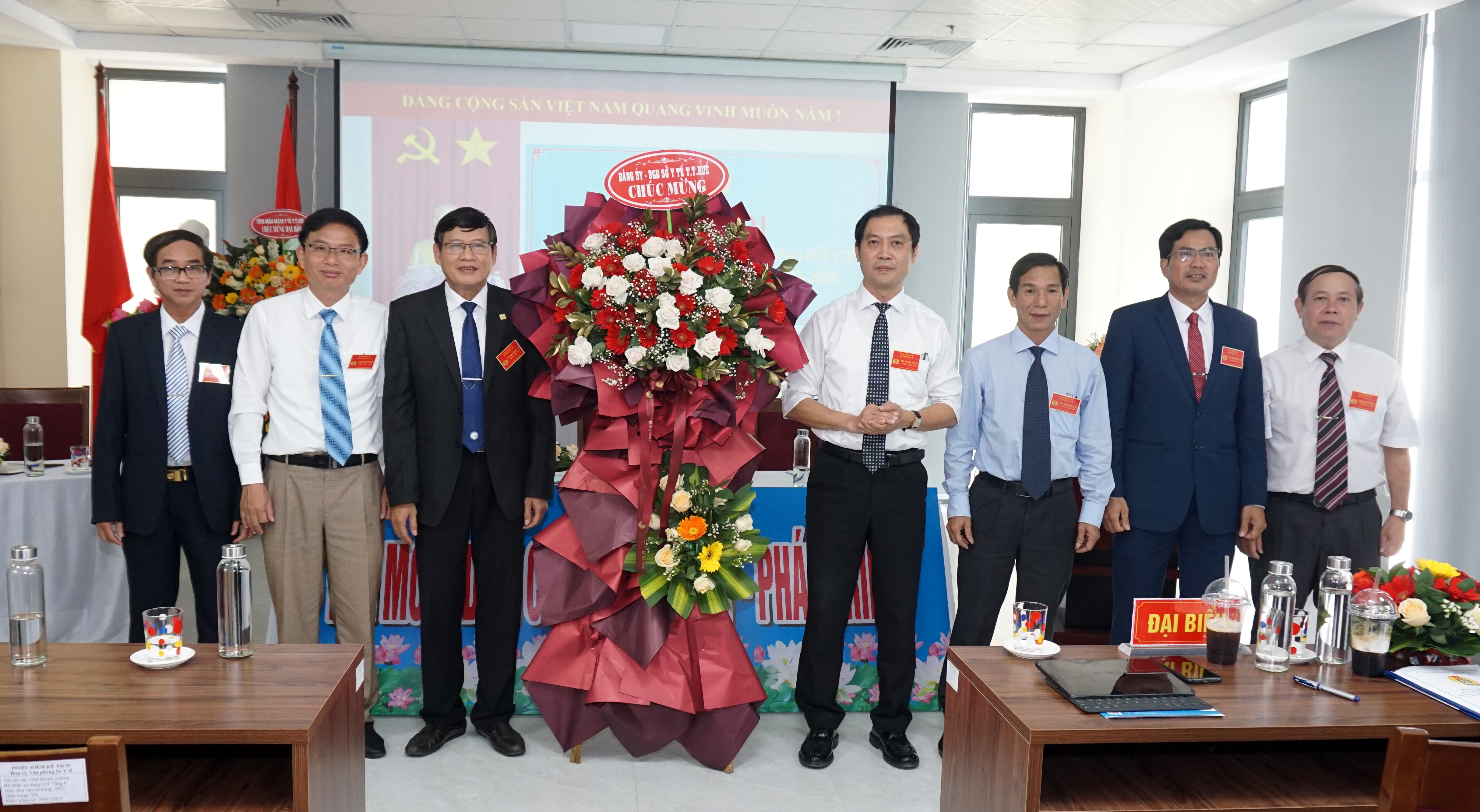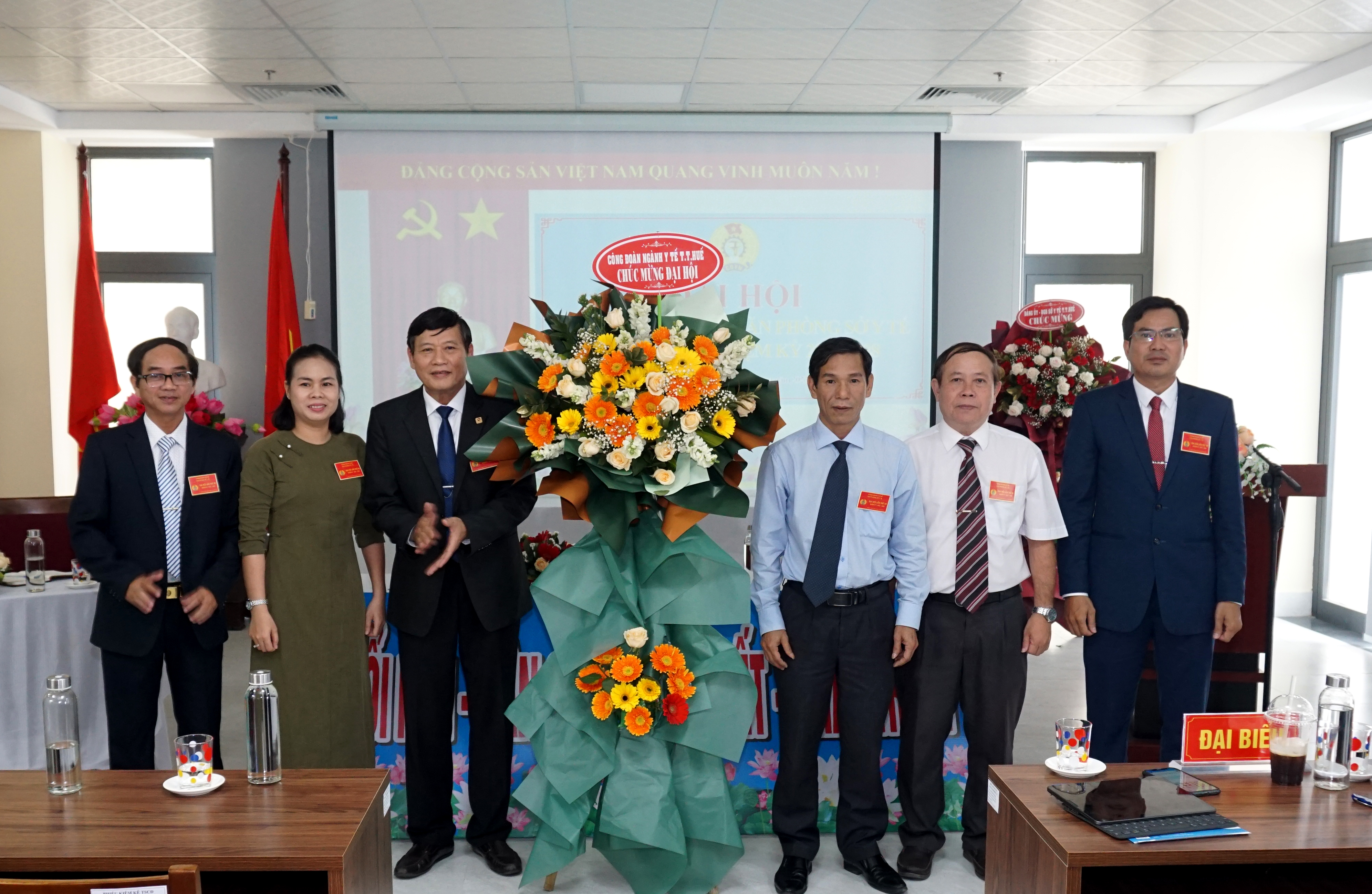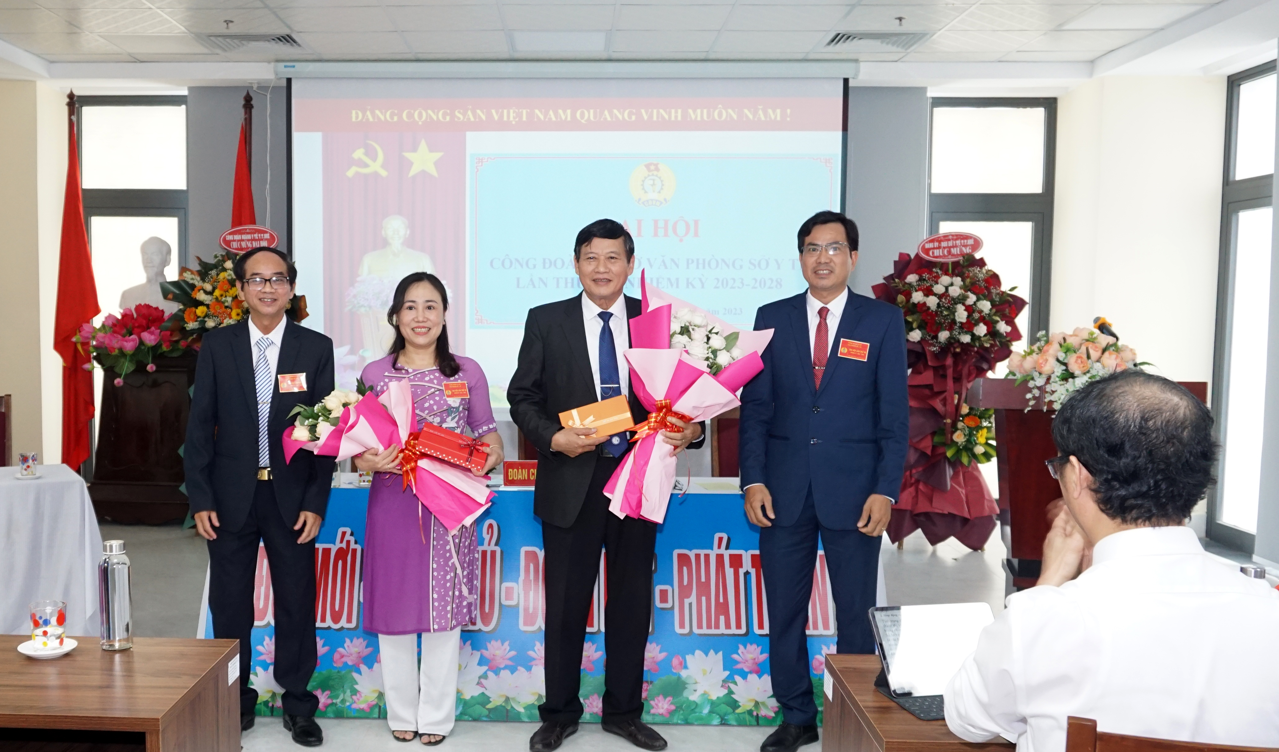 Ban lãnh đạo sở Y tế tặng hoa chúc mừng BCH CĐ nhiệm kỳ mới.