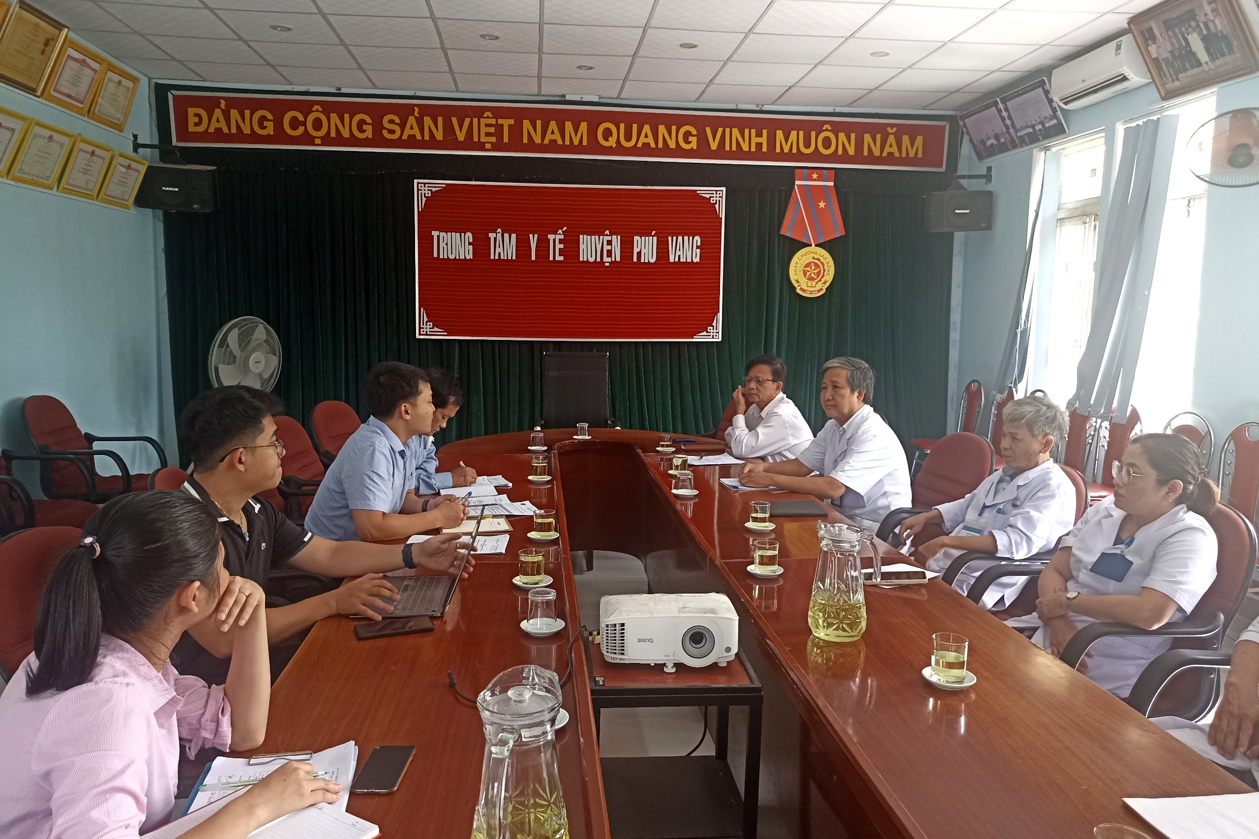 Đoàn giám sát Viện Pasteur Nha Trang có Lãnh đạo, cán bộ phụ trách hoạt động phòng chống dịch bệnh đã có buổi làm việc với TTYT huyện Phú Vang và TTYT thị xã Hương Thủy.