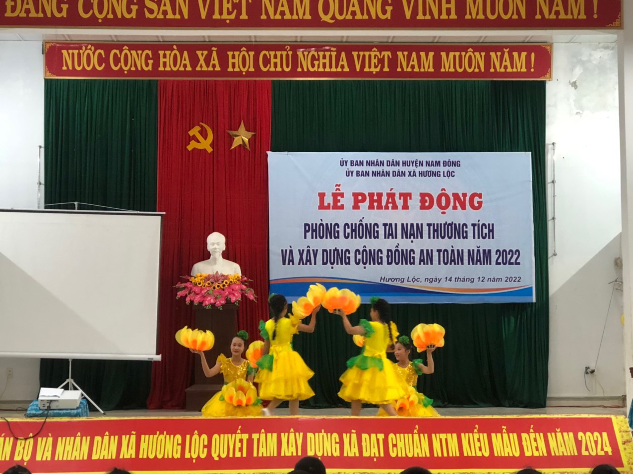 Chiều ngày 14 tháng 12 năm 2022, tại Nhà văn hóa cộng đồng xã Hương Lộc, huyện Nam Đông, tỉnh Thừa Thiên Huế; Trung tâm Kiểm soát bệnh tật tỉnh phối hợp với Ủy ban nhân dân huyện Nam Đông tổ chức Lễ phát động xây dựng cộng đồng an toàn, phòng,, chống tai nạn thương tích năm 2022.