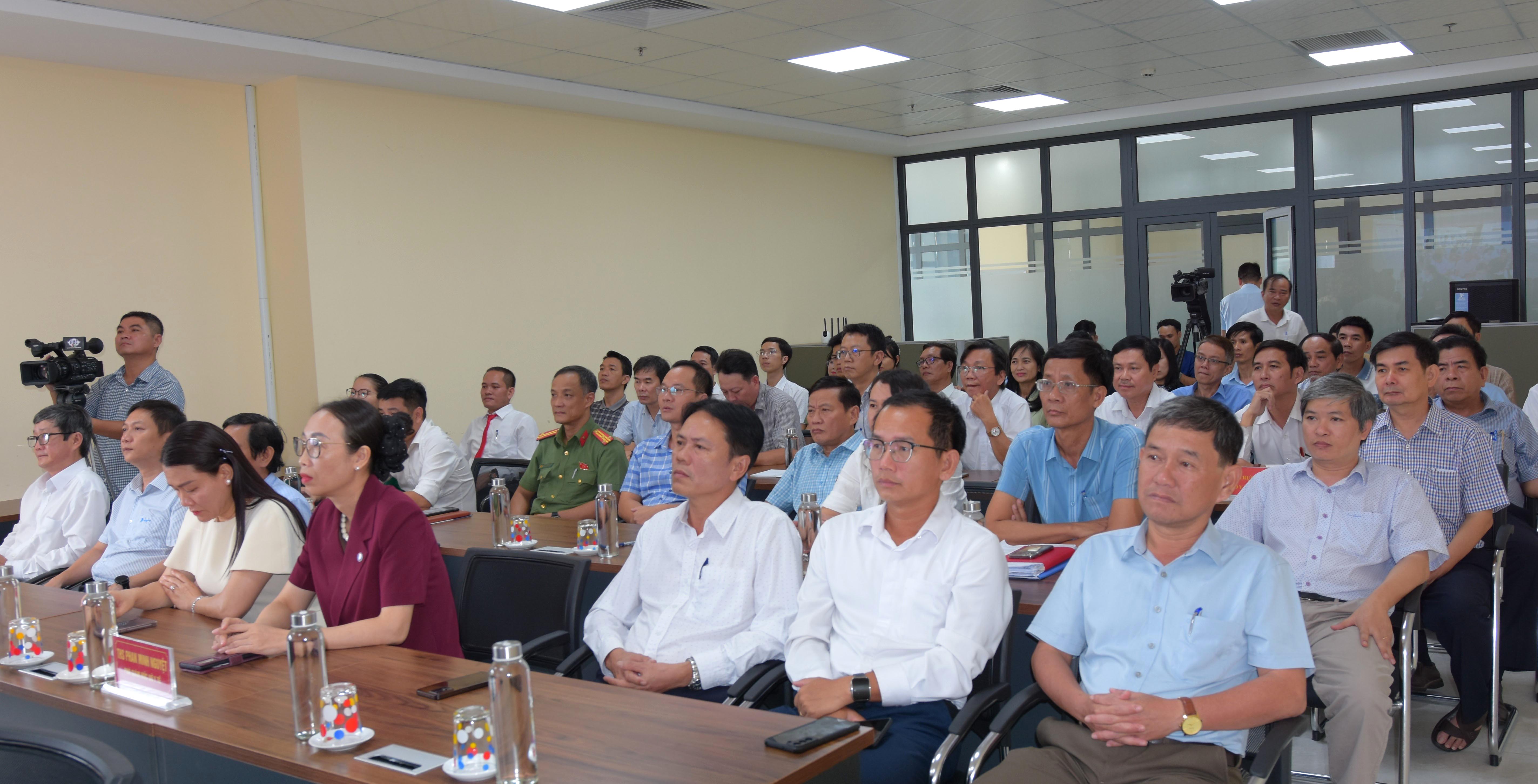 Các đại biểu xem phóng sự Kết quả hoàn thành triển khai HSBAĐT toàn Ngành Y tế thành phố Huế.