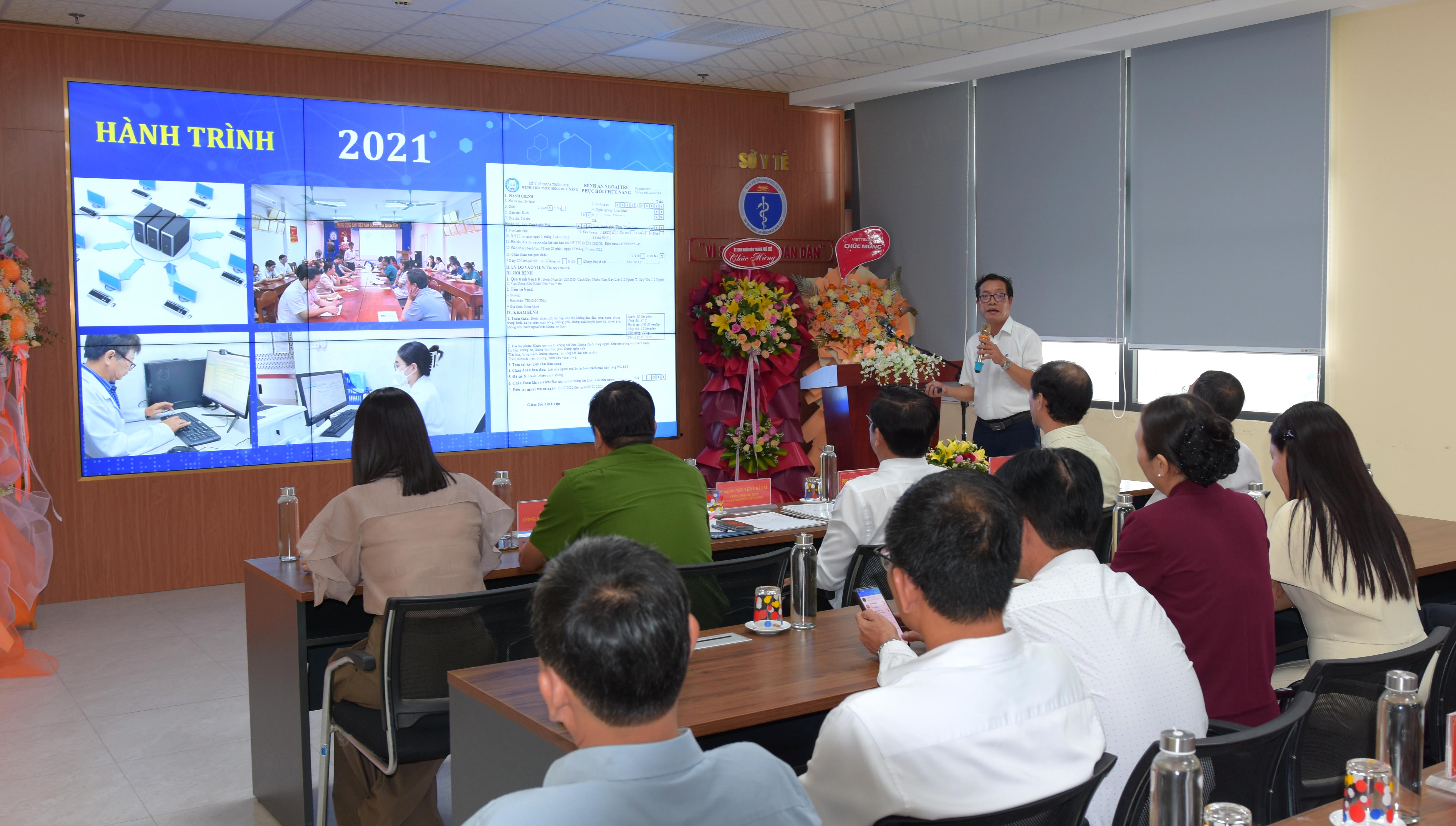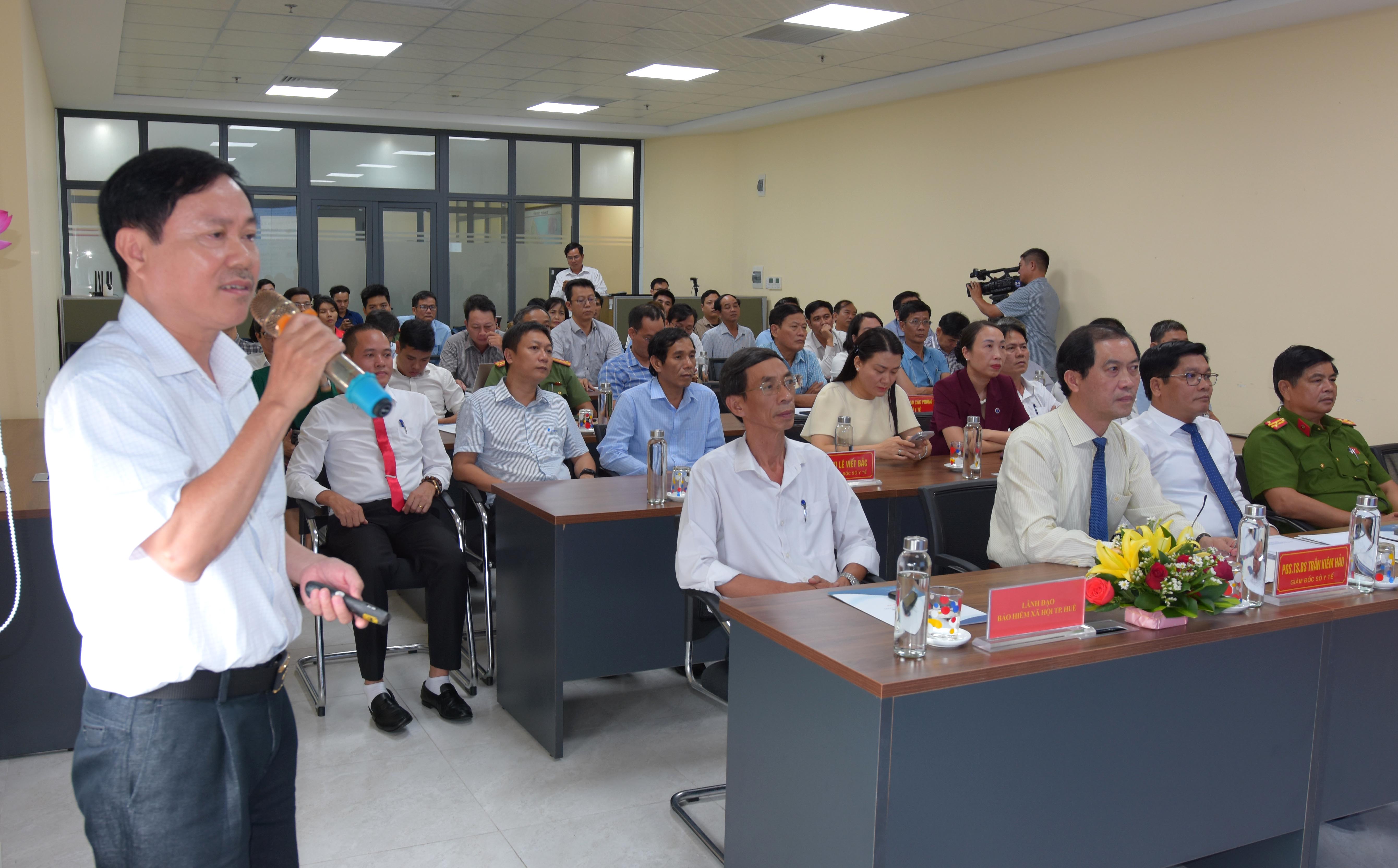 PGS.TS Trần Kiêm Hảo - Giám đốc Sở Y tế phát biểu xác định mục tiêu xây dựng một nền y tế số hiện đại, minh bạch và tiếp tục chỉ đạo xây dựng bệnh viện không giấy tờ, bệnh viện thông minh, đưa thành phố Huế trở thành địa phương đi đầu về y tế thông minh.