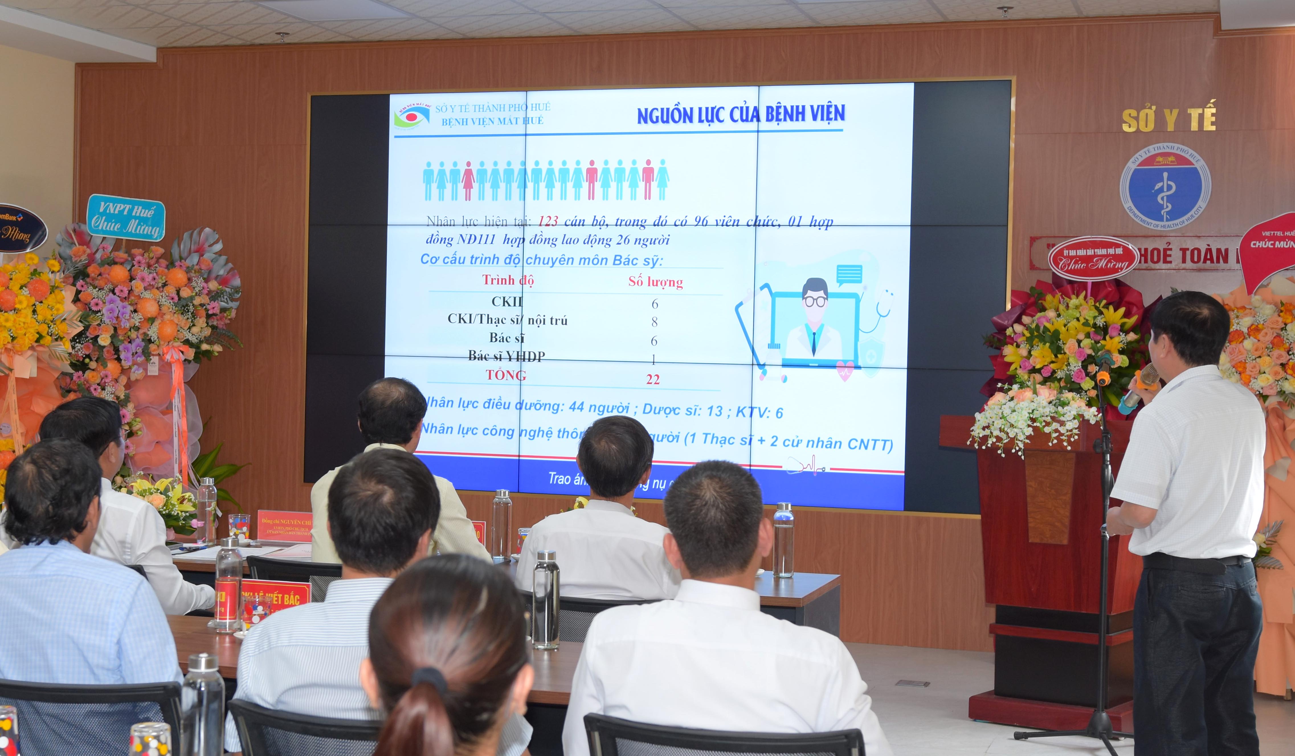 Giám đốc BV Mắt Huế - BSCKII Nguyễn Thế Hùng báo cáo kết quả triển khai BAĐT tại BVMắt Huế.