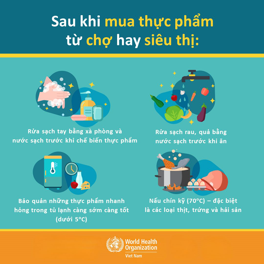 - Rửa tay trước khi chuẩn bị thực phẩm và thường xuyên trong quá trình chế biến thực phẩm