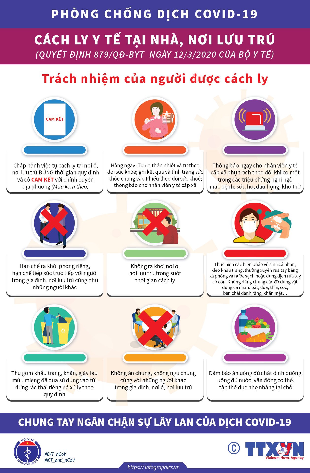 Không ra khỏi nơi ở, nơi lưu trú trong suốt thời gian cách ly.