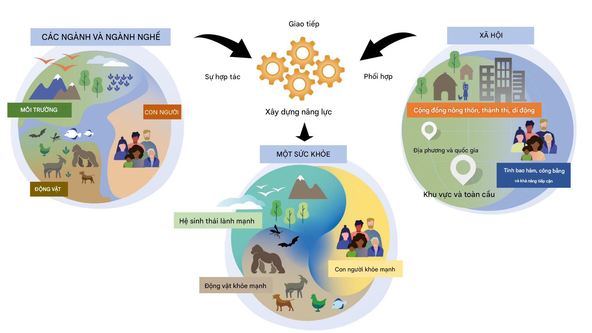 Hội đồng Chuyên gia Cấp cao về Một sức khỏe (OHHLEP) do FAO, OIE, WHO và UNEP thành lập đã thống nhất và đưa ra khái niệm tổng quát mới về Một sức khỏe. Theo đó, Một Sức khỏe là một cách tiếp cận phối hợp, thống nhất nhằm mục đích cân bằng bền vững và tối ưu hóa sức khỏe của con người, động vật và hệ sinh thái. Một sức khỏe ghi nhận sức khỏe của con người, động vật trong nước và hoang dã, thực vật, và môi trường rộng lớn hơn (bao gồm cả hệ sinh thái) có liên kết chặt chẽ và phụ thuộc lẫn nhau.