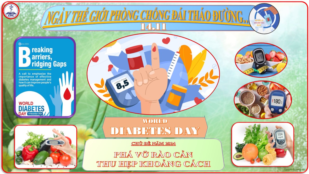 Năm nay 2024, chủ đề của Ngày Đái tháo đường Thế giới là “Breaking Barriers Bridging Gaps” tạm dịch “Phá vỡ rào cản, thu hẹp khoảng cách ”. Chủ đề nhằm nhấn mạnh tác động của bệnh đái tháo đường đến sức khỏe thể chất và tinh thần của con người và tầm quan trọng của việc quản lý bệnh đái tháo đường hiệu quả và cách thức cải thiện chất lượng cuộc sống của con người, đồng thời kêu gọi cộng đồng cùng nhau hợp tác để giải quyết vấn đề toàn cầu này.