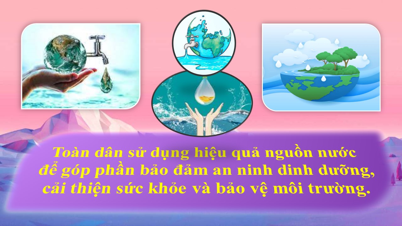 Toàn dân sử dụng hiệu quả nguồn nước để góp phần bảo đảm an ninh dinh dưỡng, cải thiện sức khỏe và bảo vệ môi trường.