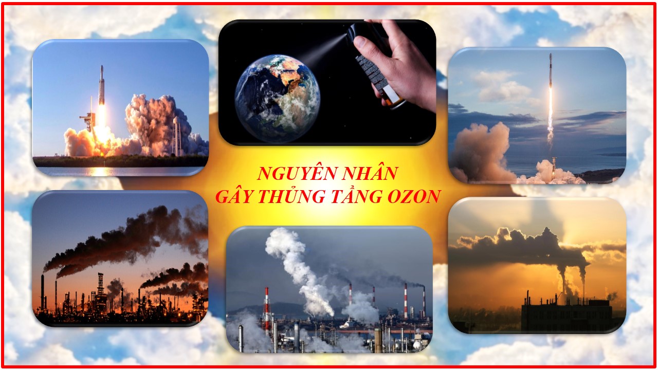 Nguyên nhân thủng tầng Ozone được bắt nguồn từ các hoạt động sản xuất, sinh hoạt của con người. Sự phát triển mạnh mẽ của nền công nghiệp kéo theo một lượng khổng lồ khí thải được xả thẳng ra môi trường mỗi ngày. Các chất thải công nghiệp bao gồm các loại khí độc như: CO2, Nito, Metan,… vẫn được đào thải ra mỗi trường hàng ngày với nồng độ vô cùng lớn. Đây đều là những chất gây ra ô nhiễm không khí, hiệu ứng nhà kính và thủng tầng Ozone.