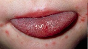 Các vết loét của bệnh tay chân miệng ở miệng trẻ