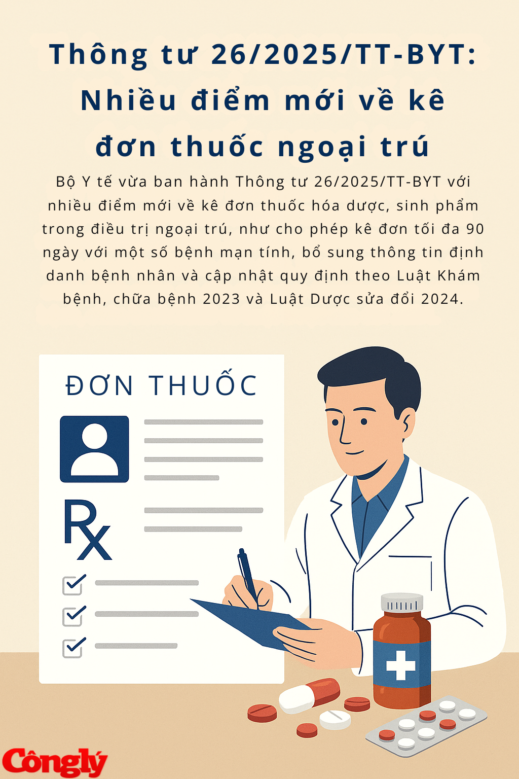 Thông tư số 26/2025/TT-BYT ngày 30/6/2025 của Bộ Y tế quy định về đơn thuốc và việc kê đơn thuốc hóa dược, sinh phẩm trong điều trị ngoại trú tại cơ sở khám bệnh, chữa bệnh với một số điểm mới sau: