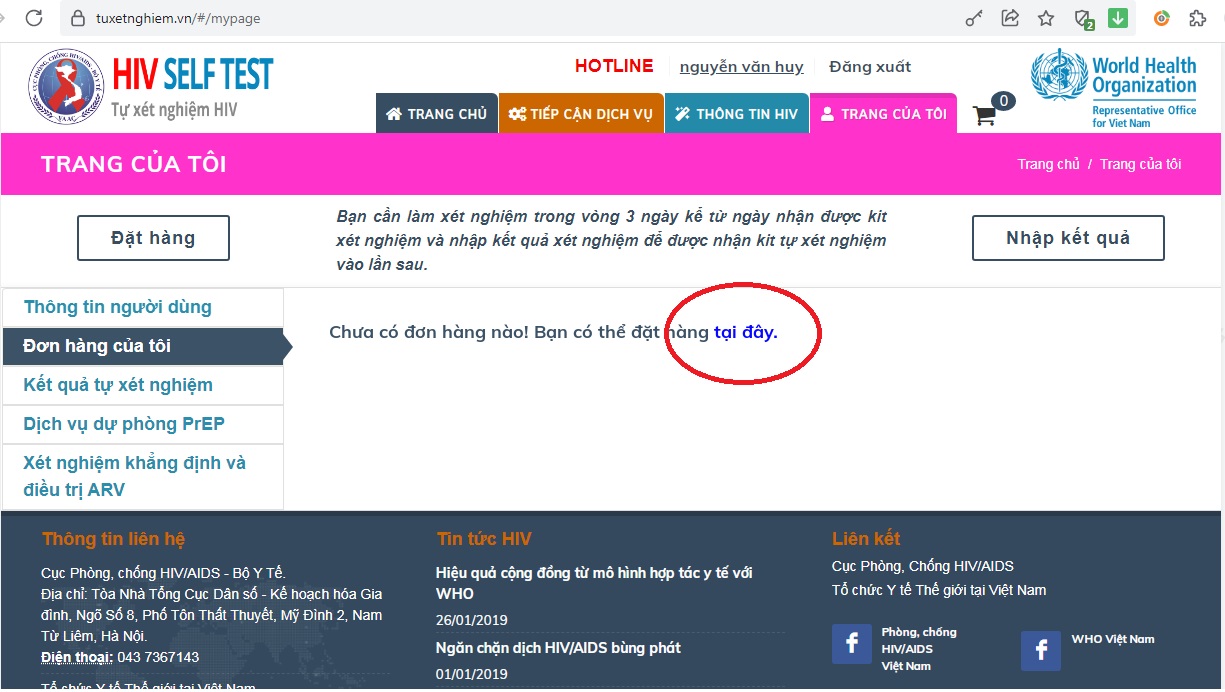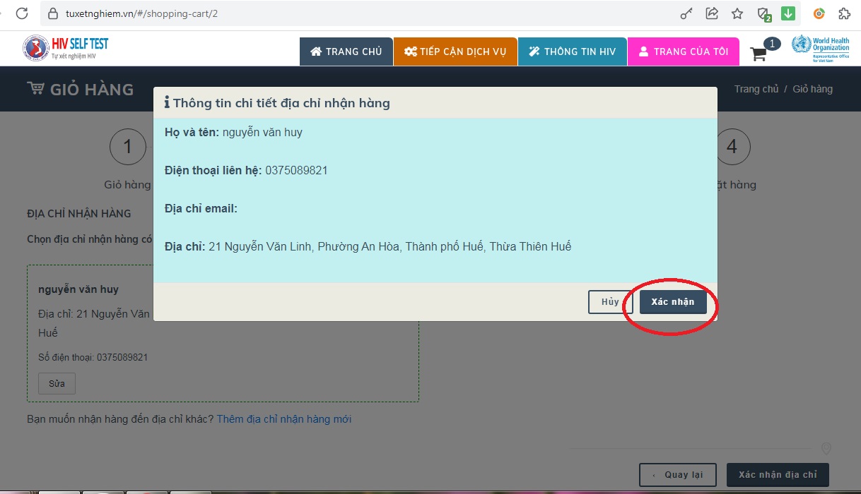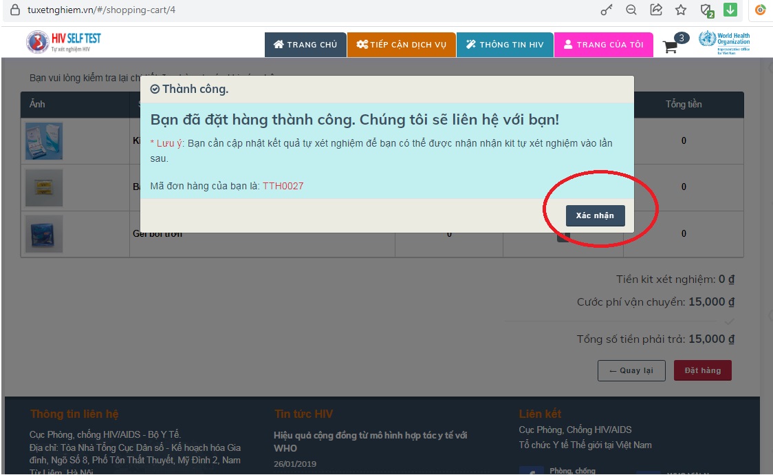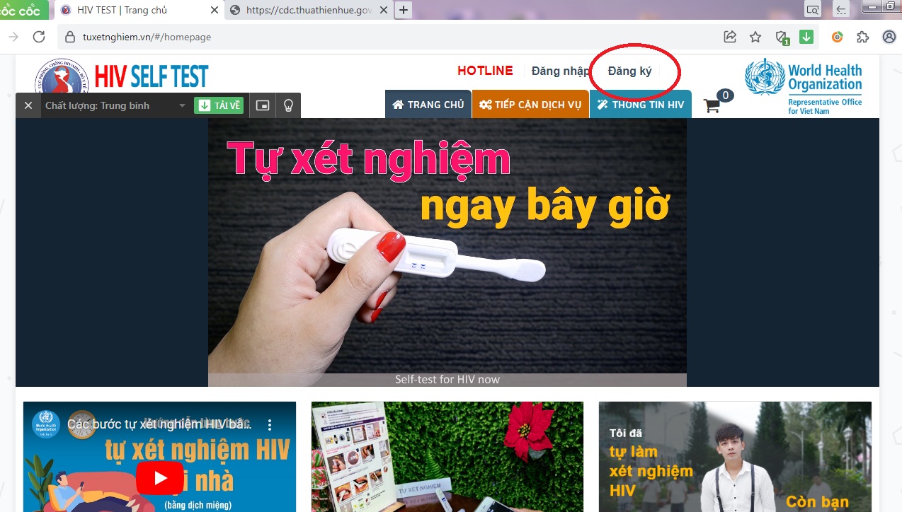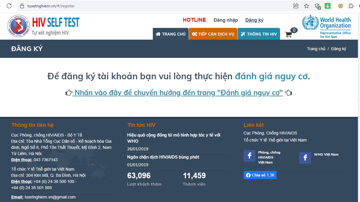 CÁC THAO TÁC ĐĂNG KÝ NHẬN KIT TEST TỰ XÉT NGHIỆM HIV TẠI TRANG WEB TUXETNGHIEM.VN