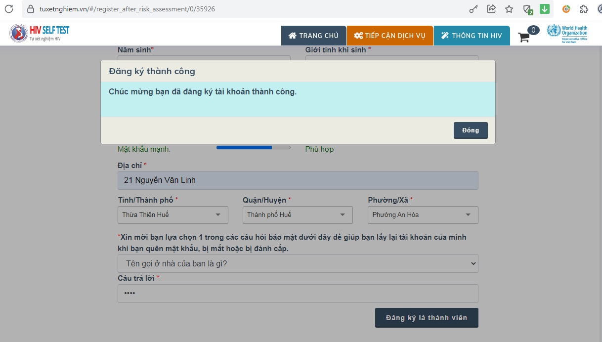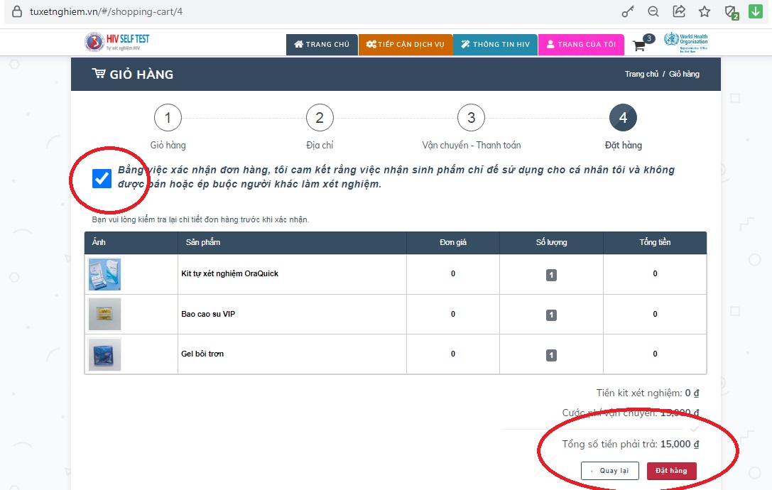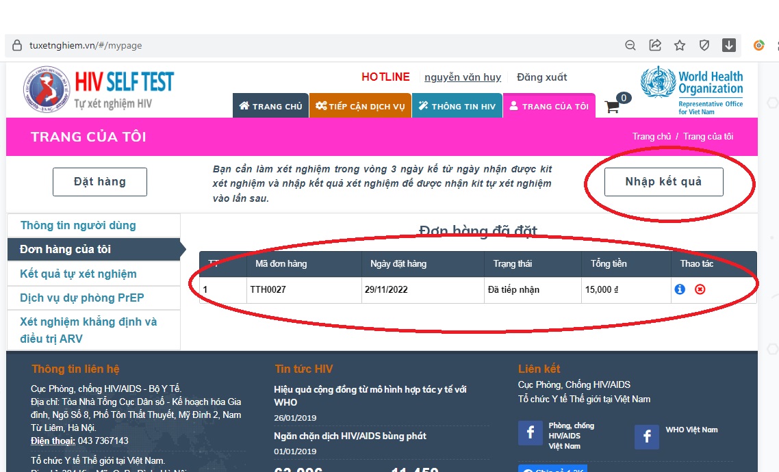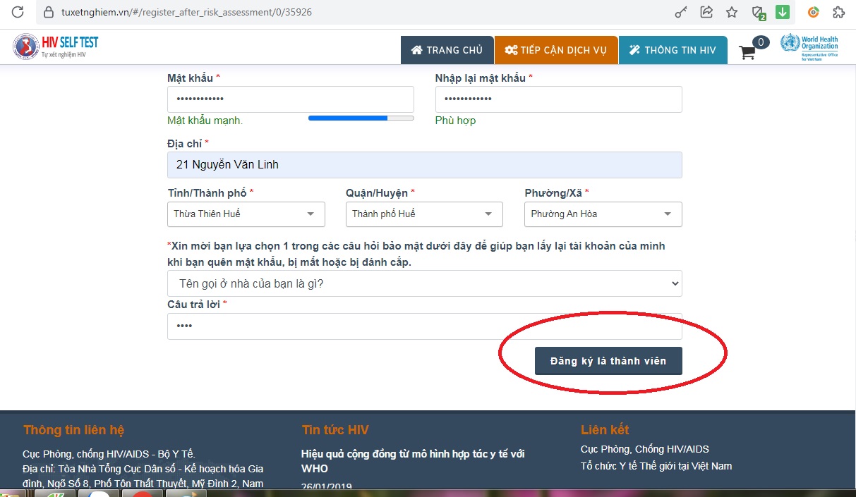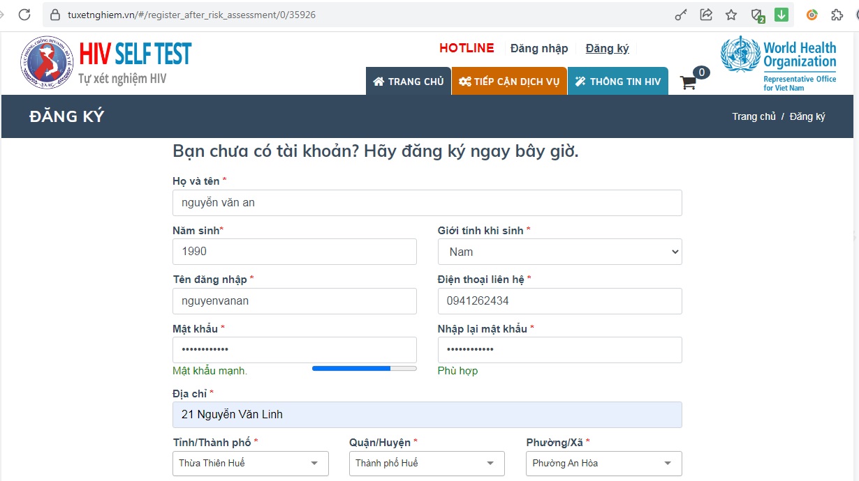 CÁC THAO TÁC ĐĂNG KÝ NHẬN KIT TEST TỰ XÉT NGHIỆM HIV TẠI TRANG WEB TUXETNGHIEM.VN