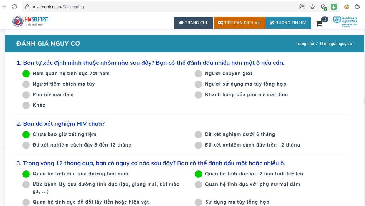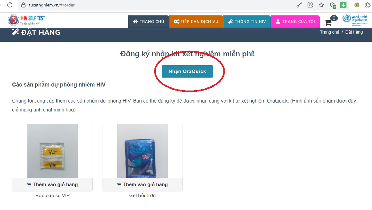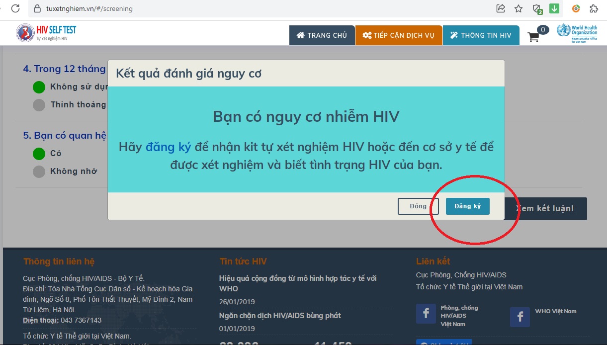 Các thao tác đăng ký nhận kit test tự xét nghiệm HIV tại trang web tuxetnghiem.vn