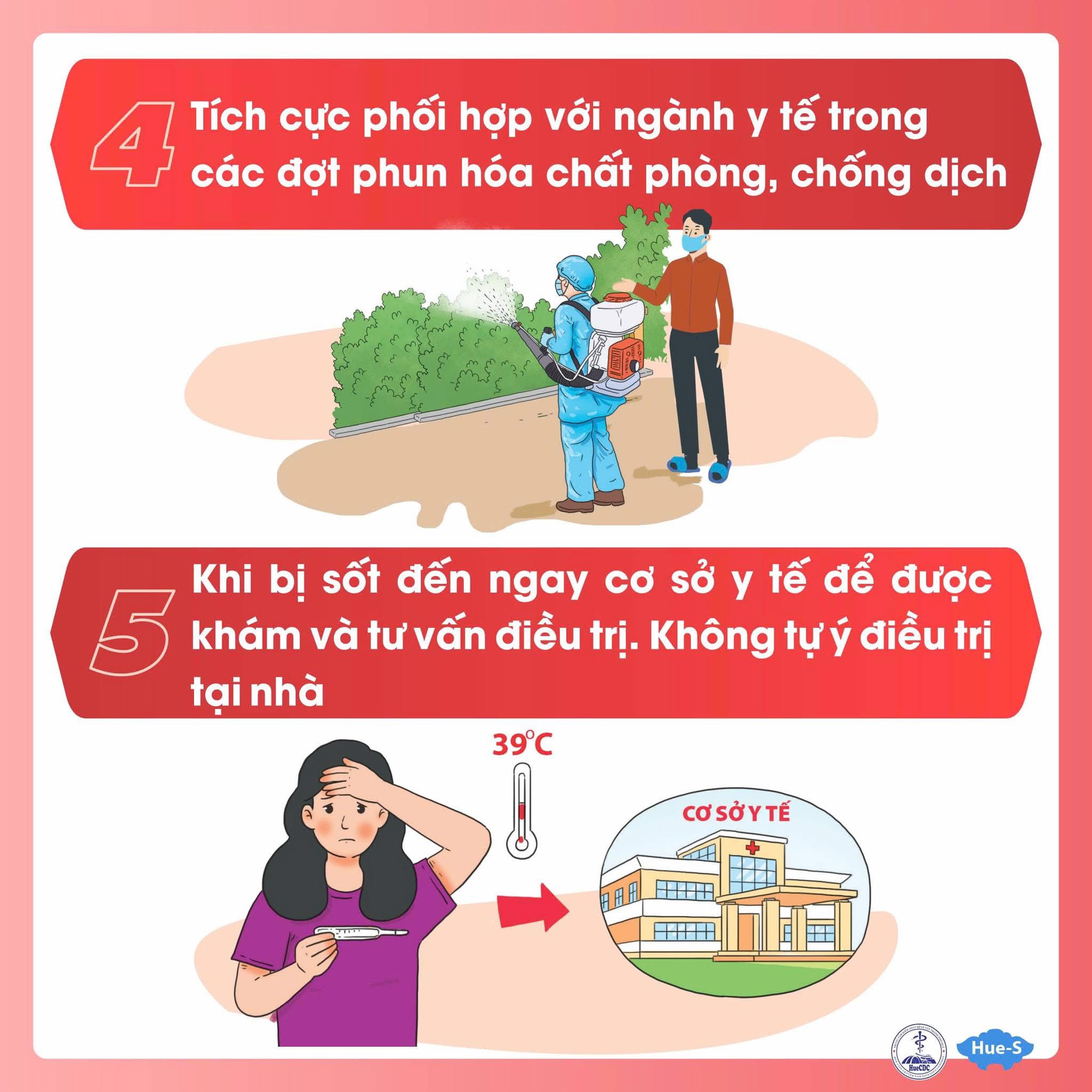 + Đối với sốt xuất huyết: Tăng cường phòng chống sốt xuất huyết chủ động với sự tham gia của chính quyền địa phương, cộng đồng và toàn xã hội trong việc vệ sinh môi trường, diệt lăng quăng, bọ gậy…