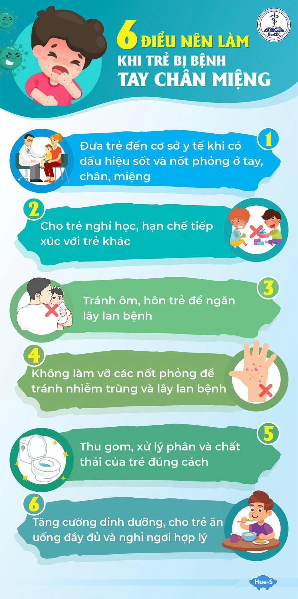 Hướng dẫn cho các cơ sở giáo dục thường xuyên thực hành vệ sinh tay và các biện pháp vệ sinh phòng bệnh cá nhân cho trẻ và người chăm sóc trẻ. Tại các cơ sở giáo dục mầm non đảm bảo có sẵn các phương tiện rửa tay, thường xuyên khử trùng lớp học, đặc biệt là đồ chơi và bề mặt tiếp xúc như sàn, bàn ghế, tay nắm cửa,…