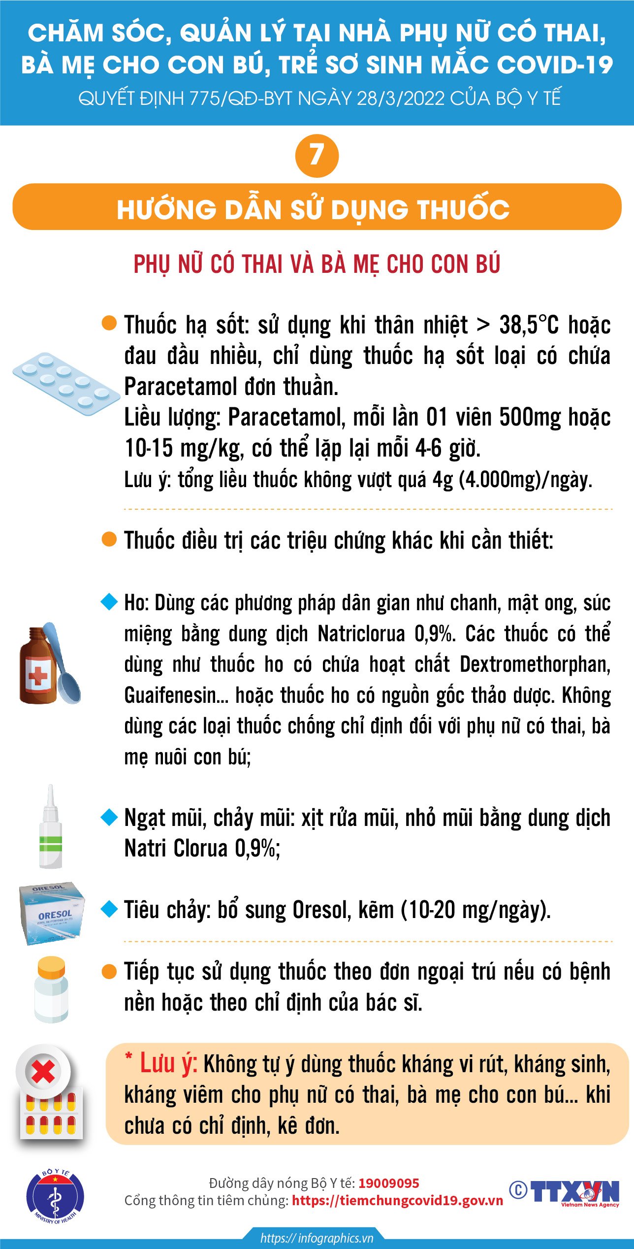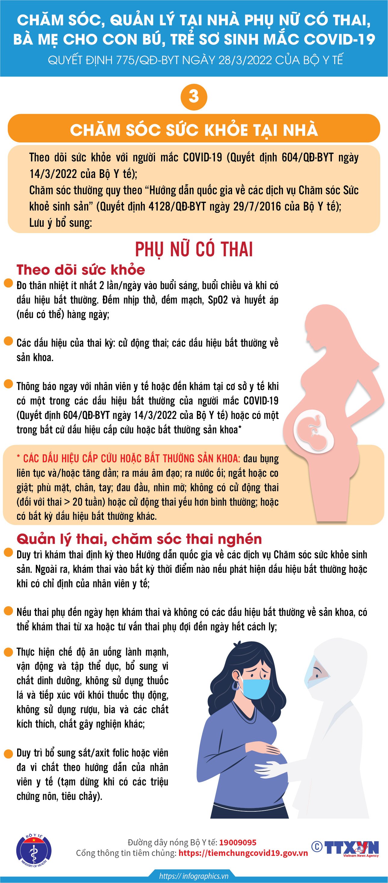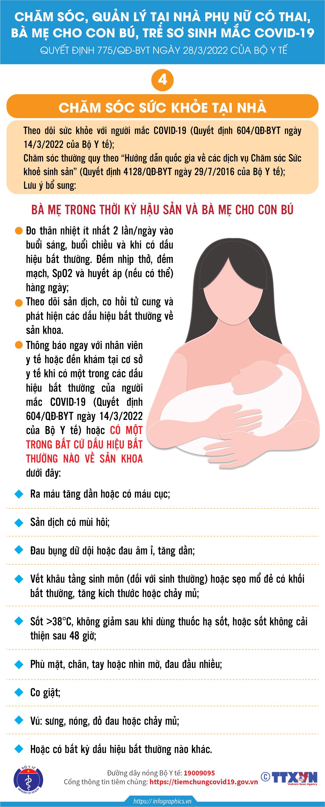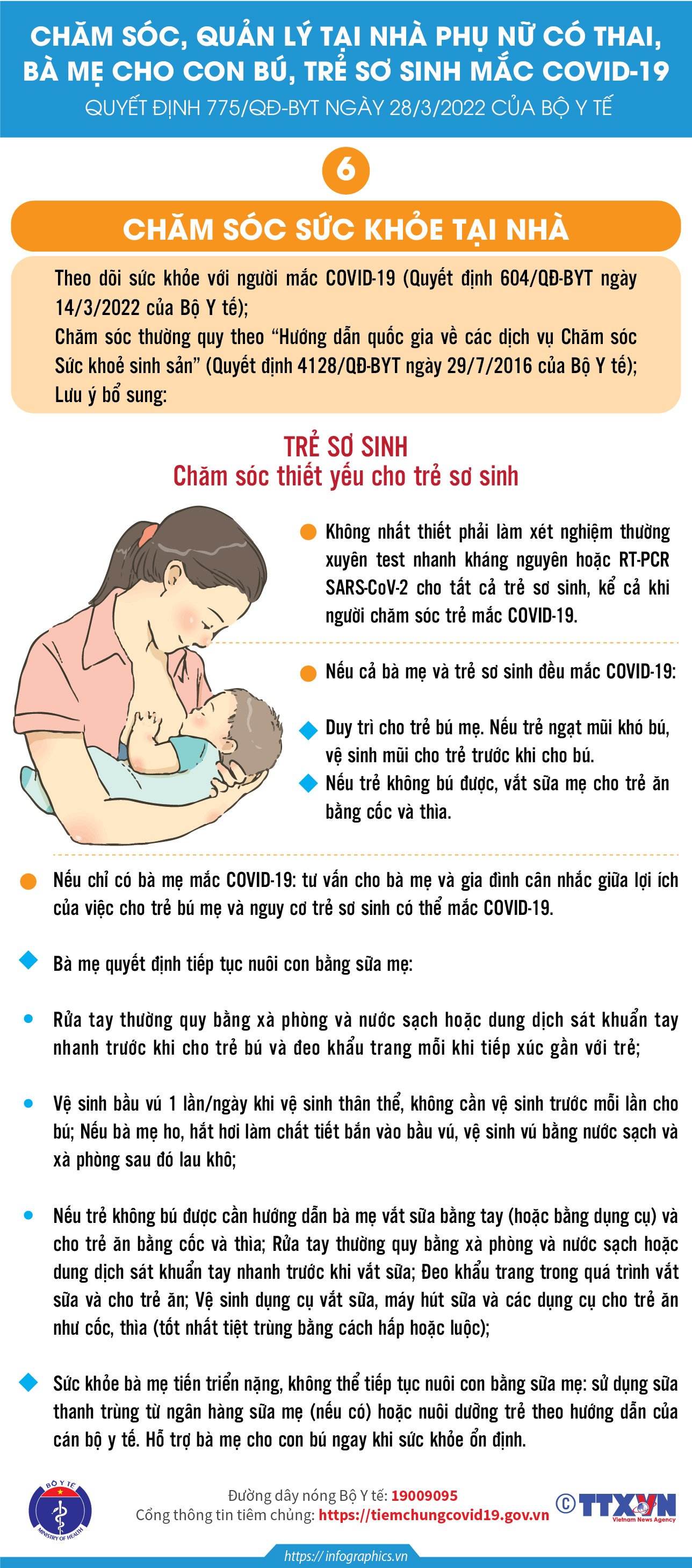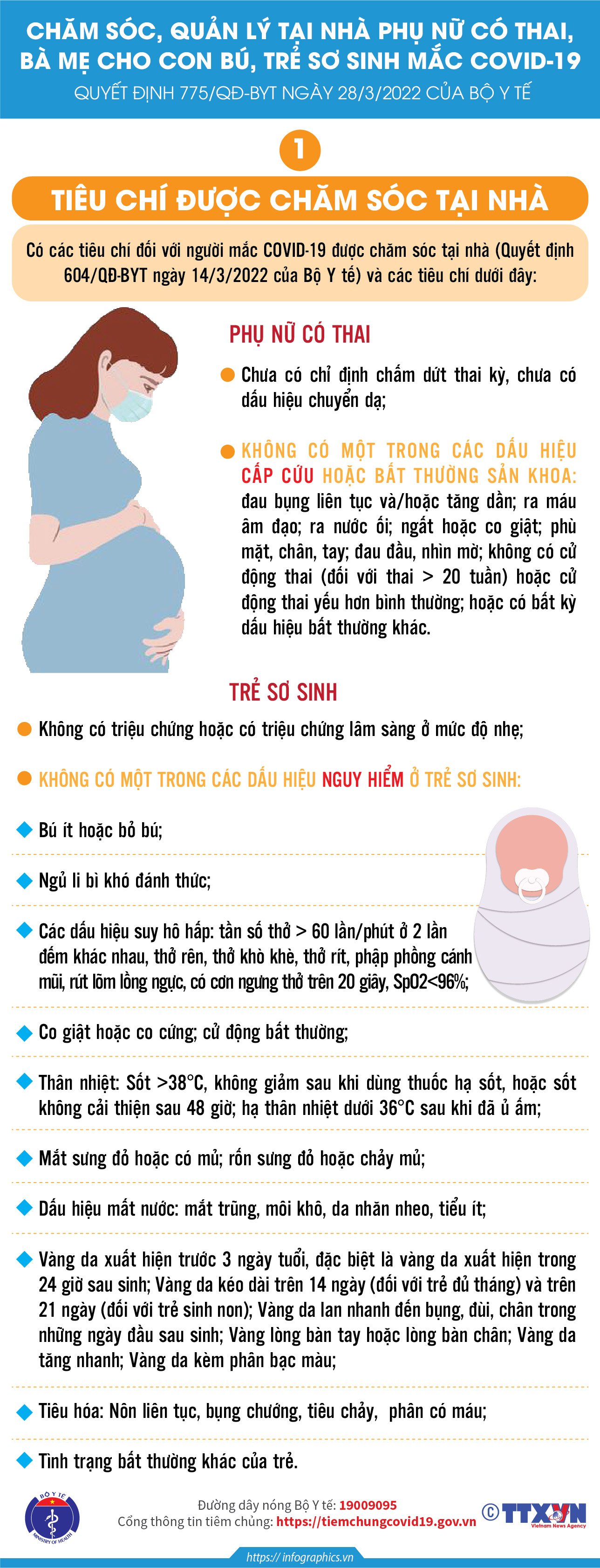 Các Infographic truyền thông Hướng dẫn chăm sóc, quản lý tại nhà đối với phụ nữ có thai, bà mẹ cho con bú và trẻ sơ sinh mắc COVID-19 theo Quyết định 775/QĐ-BYT ngày 28/3/2022 của Bộ Y tế.