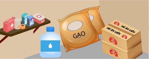 Chuẩn bị nhu yếu phẩm bao gồm: Lương thực, thực phẩm; Thuốc y tế; Nước uống, nước sinh hoạt.