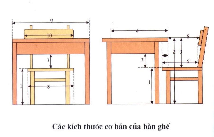 - Do học sinh có chiều cao cơ thể khác nhau, nên trong cùng 1 lớp học có thể phải bố trí 2 đến 3 loại bàn ghế.