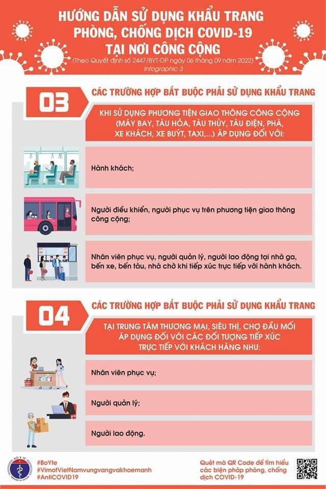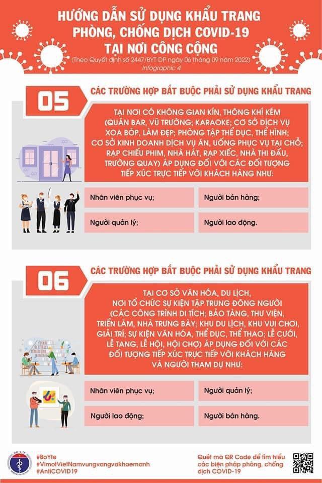 - Tất cả đối tượng (trừ trẻ dưới 5 tuổi) khi đến nơi công cộng thuộc khu vực được công bố cấp độ dịch ở mức độ 3 hoặc mức độ 4.