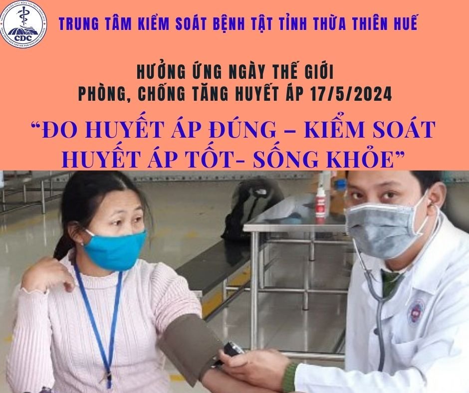 Ngày thế giới phòng chống tăng huyết áp 17 tháng 5 năm 2024 với chủ đề " ĐO HUYẾT ÁP ĐÚNG – KIỂM SOÁT HUYẾT ÁP TỐT- SỐNG KHỎE", nâng cao nhận thức về bệnh tăng huyết áp và đo huyết áp đúng.