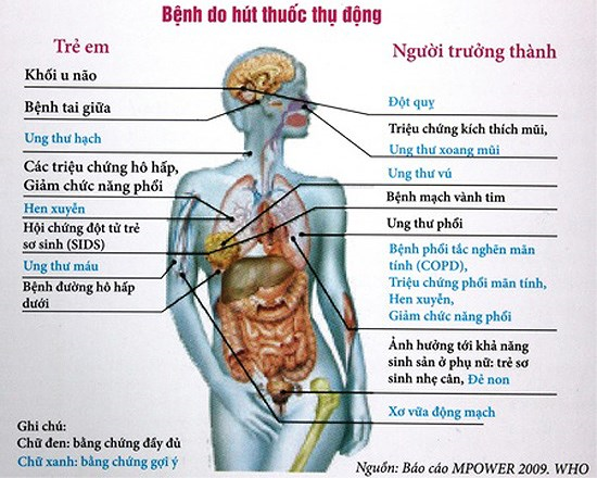 So với người không hút thuốc, người đã từng hút thuốc dễ bị bệnh khí thủng/viêm phổi mạn tính gấp 5 lần và người đang hút thuốc thì dễ bị bệnh khí thủng/viêm phổi mạn tính gấp 6 lần.