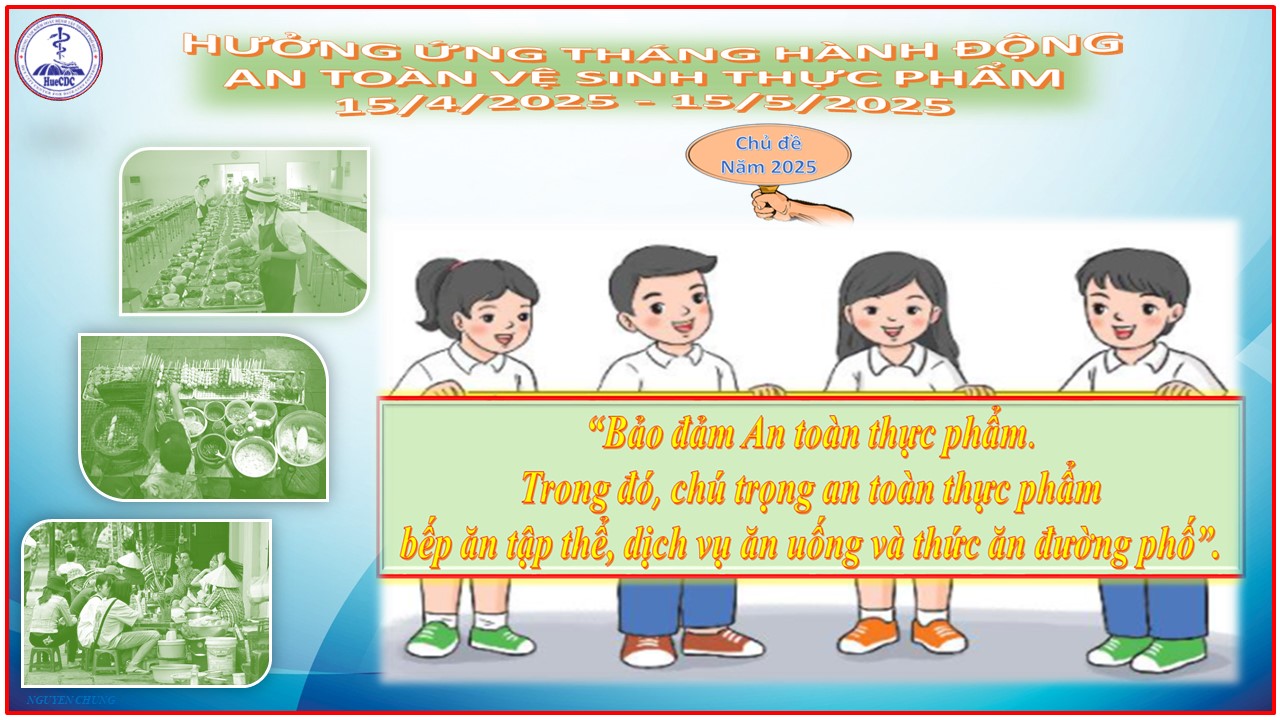 Năm 2025, Tháng hành động vì An toàn thực phẩm được phát động từ ngày 15/4/2025 đến 15/5/2025 với chủ đề: “Bảo đảm An toàn thực phẩm, trong đó chú trọng an toàn thực phẩm bếp ăn tập thể, dịch vụ ăn uống và thức ăn đường phố”. Nhằm nâng cao năng lực bảo đảm an toàn tại các cơ sở có bếp ăn tập thể, kinh doanh dịch vụ thức ăn đường phố, giảm thiểu ngộ độc do tiêu dùng thực phẩm không an toàn.