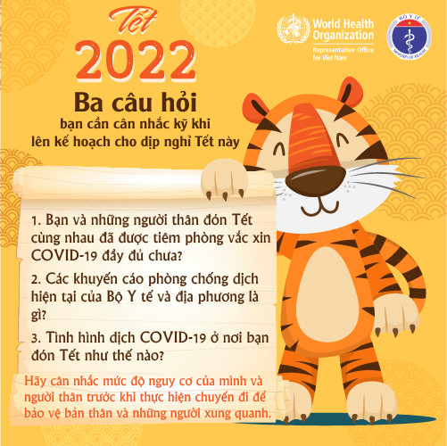 Bộ Y tế và Tổ chức Y tế Thế giới phối hợp xây dựng các Infographic khuyến cáo đón Tết 2022 an toàn. SỨC KHỎE LÀ MÓN QUÀ QUÝ NHẤT CHÚNG TA CÓ THỂ DÀNH CHO NHAUTRONG DỊP TẾT NÀY.