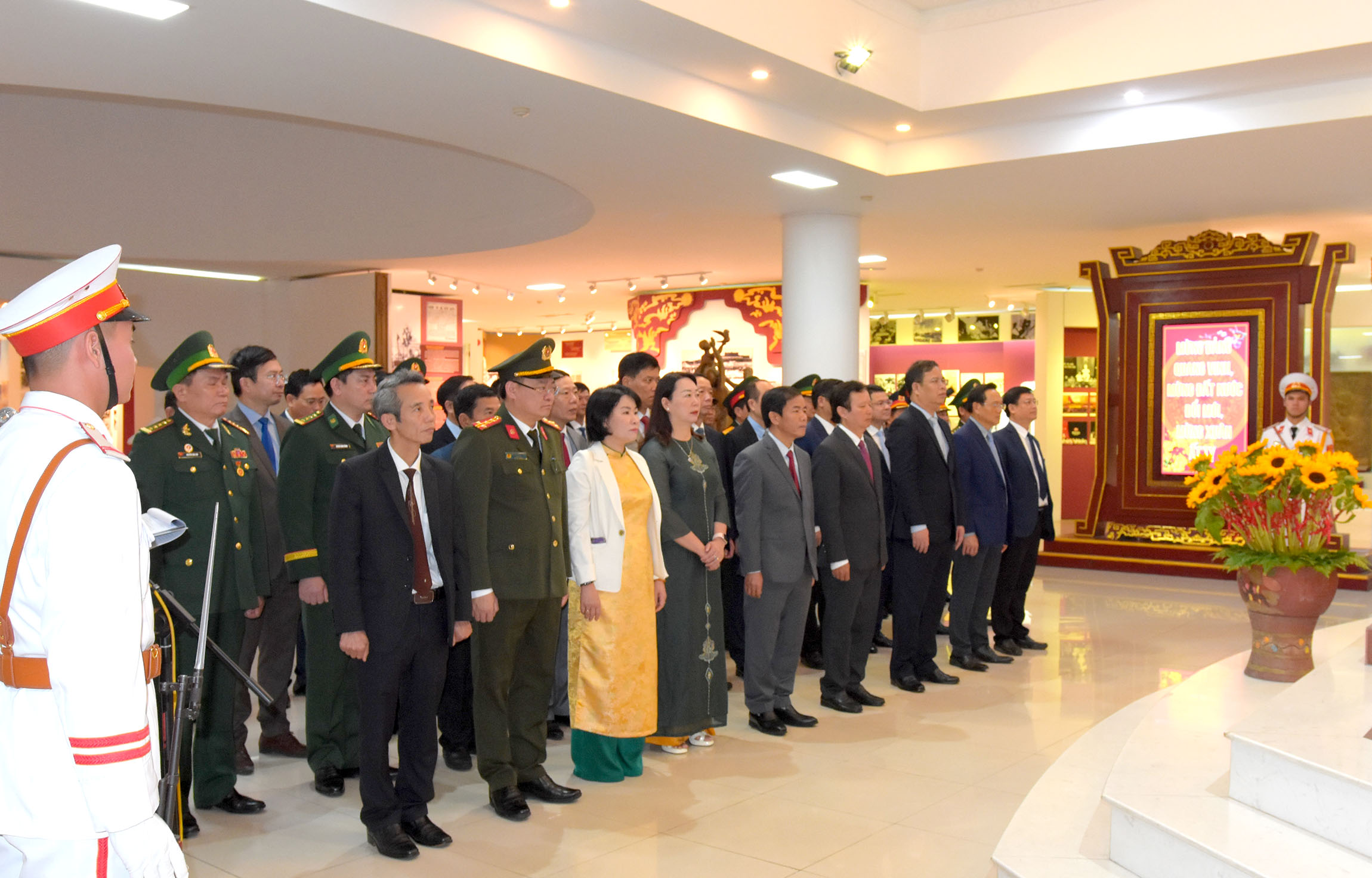 Đồng chí Lê Trường Lưu - UVTW Đảng, Bí thư Thành uỷ, Chủ tịch HĐND, Trưởng Đoàn ĐBQH thành phố Huế cùng các đồng chí trong Ban Thường vụ Tỉnh ủy - Thường trực HĐND - UBND - Uỷ ban MTTQVN thành phố; lãnh đạo các sở, ban, ngành, đoàn thể, lực lượng vũ trang, các quận/huyện/thị xã dâng hoa và tưởng niệm trước chân dung Chủ tịch Hồ Chí Minh.