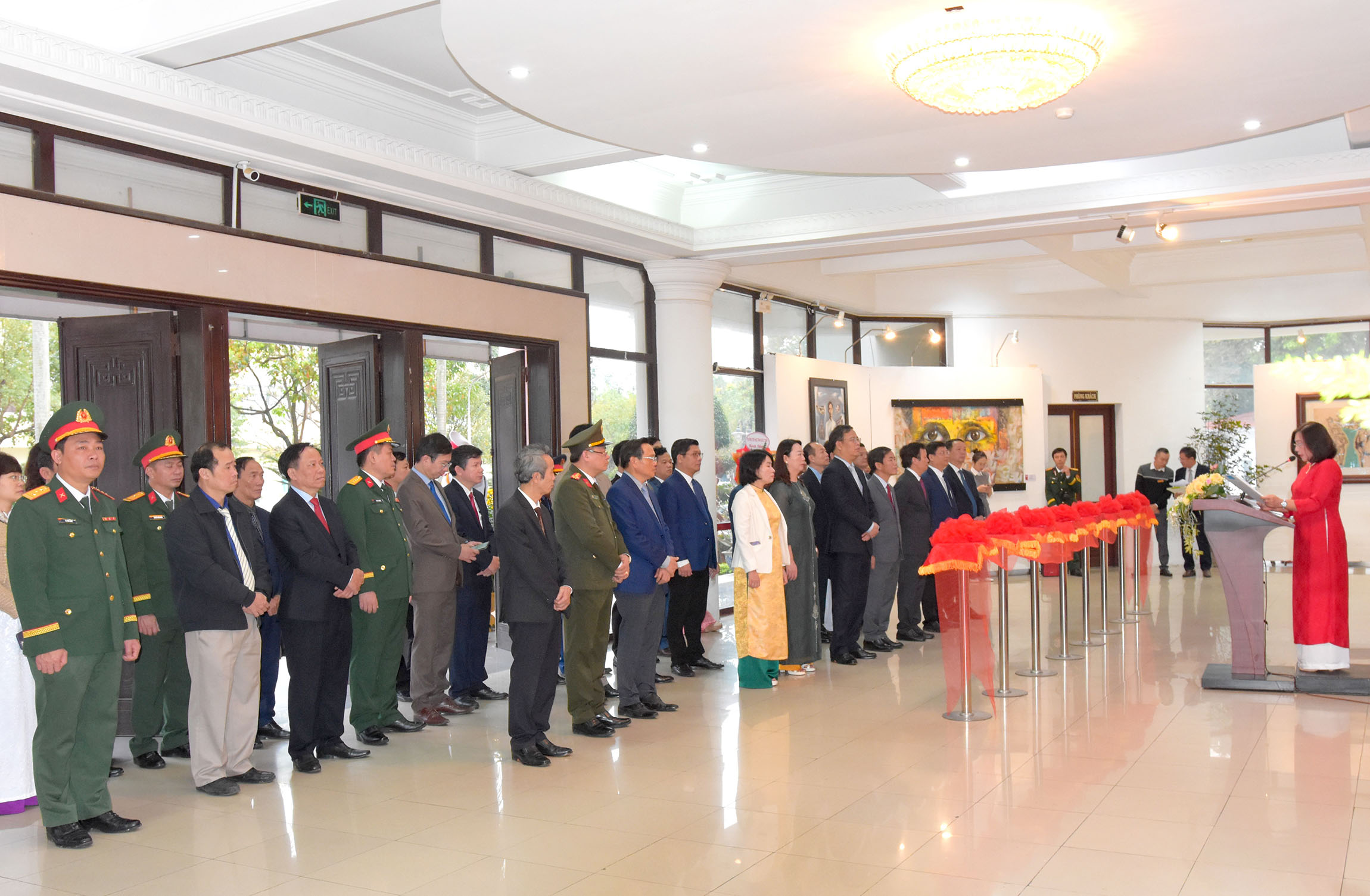 Đồng chí Lê Trường Lưu cùng lãnh đạo Thành ủy, HĐND, UBND, UBMTTQ cắt băng khai mạc trưng bày chuyên đề "Hồ Chí Minh - Tên Người Sáng mãi"
