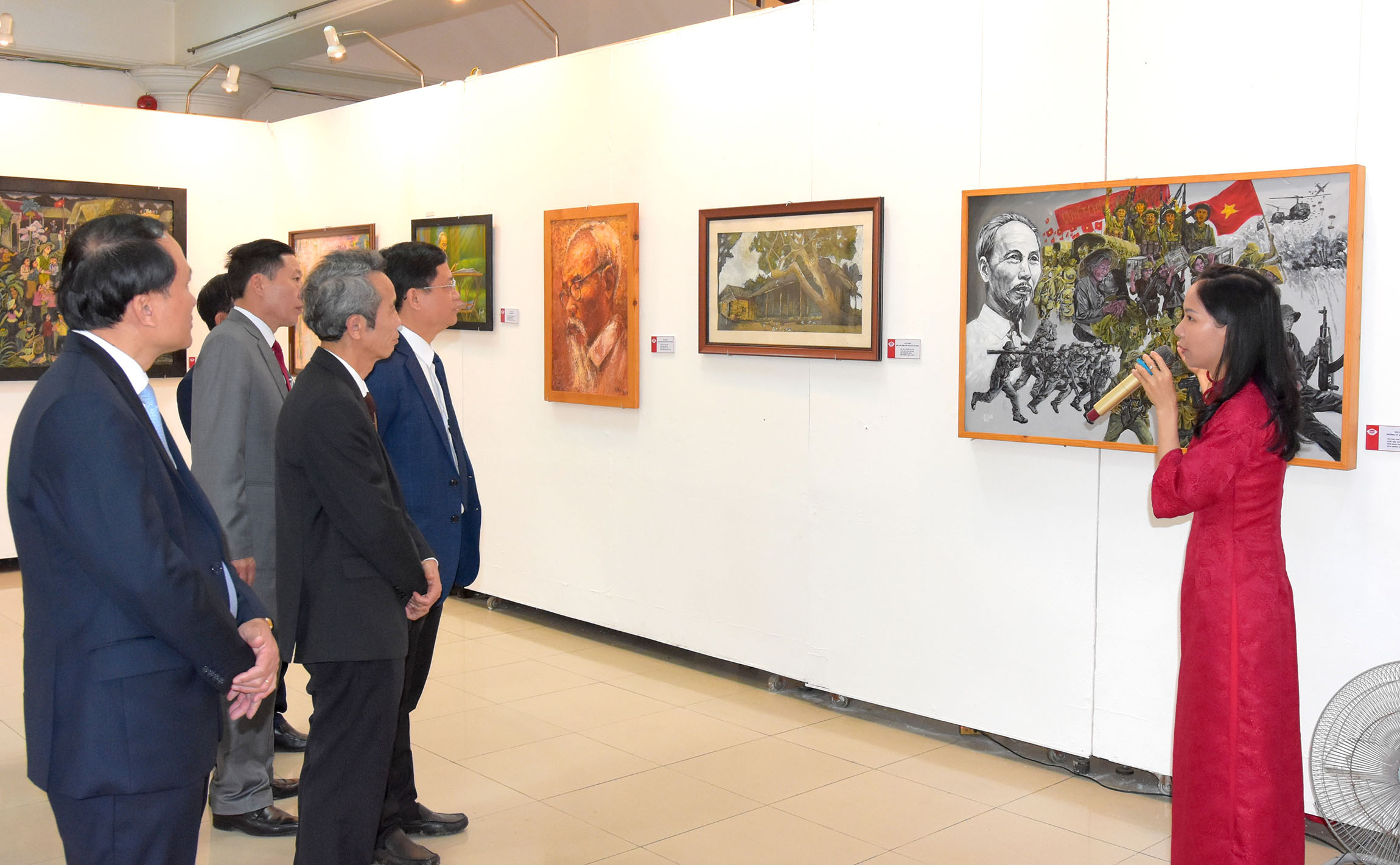 Lãnh đạo Thành ủy, HĐND, UBND, UBMTTQ và đại biểu các Sở, Ban/ngành tham quan và nghe giới thiệu các tác phẩm về Bác Hồ.