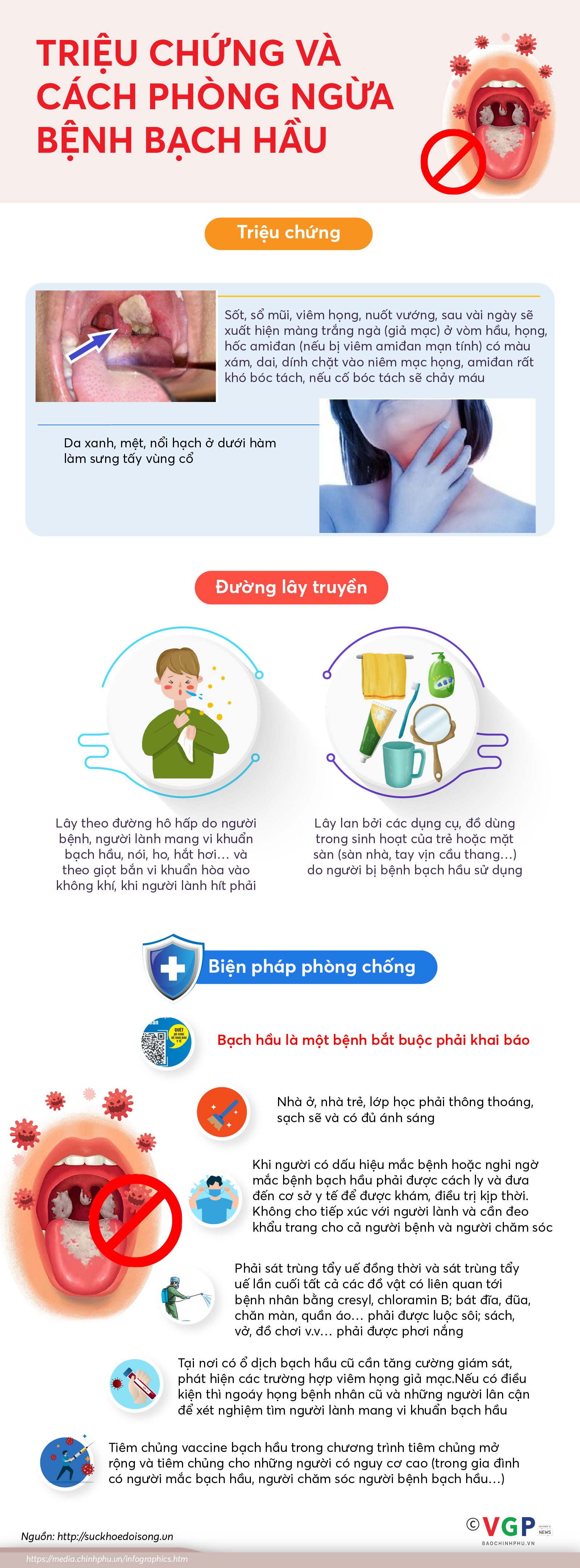 Để chủ động phòng chống bệnh bạch hầu, Ngành Y tế khuyến cáo người dân cần thực hiện tốt các biện pháp sau: