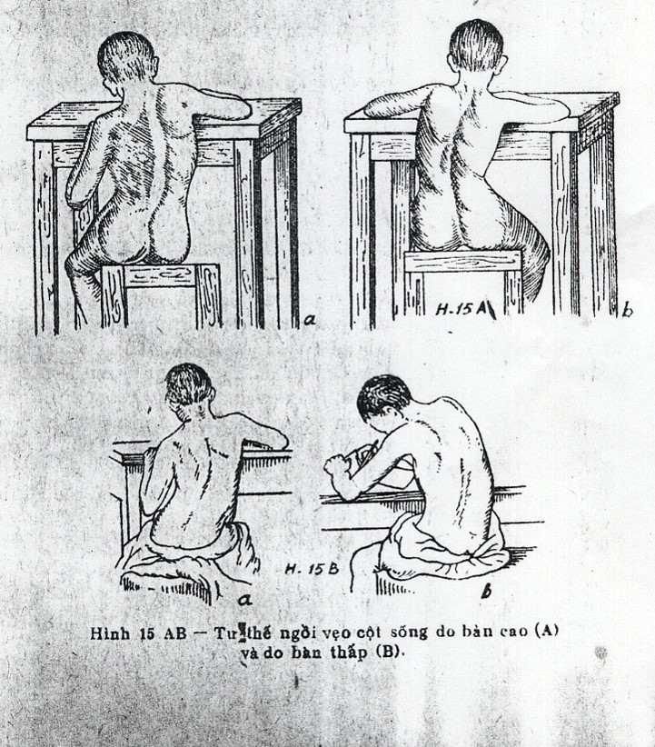 Tư thế ngồi không đúng bo bàn ghế không phù hợp tầm vóc học sinh