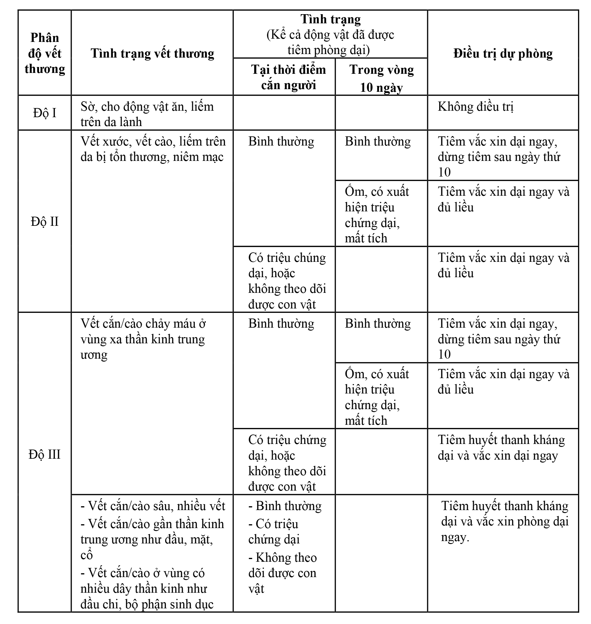 (Theo hướng dẫn giám sát và phòng chống bệnh dại trên người của Bộ Y tế ban hành kèm theo Quyết định số 1622/QĐ-BYT ngày 08/5/2014)