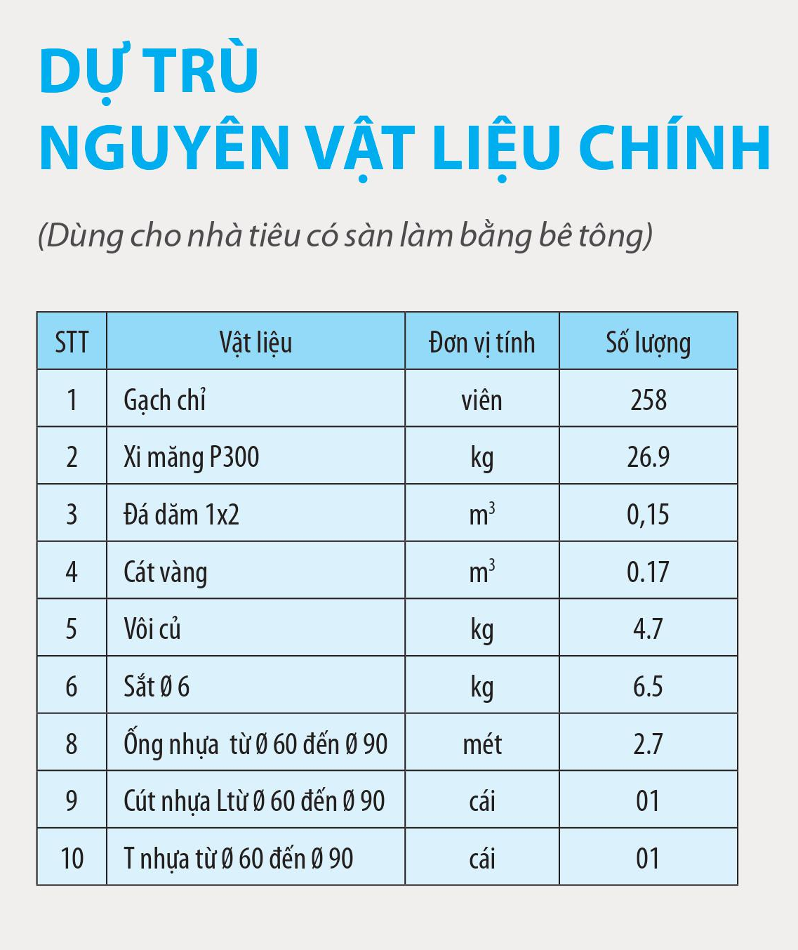 Dự trù nguyên vật liệu chính xây dựng nhà tiêu chìm có ống thông hơi
