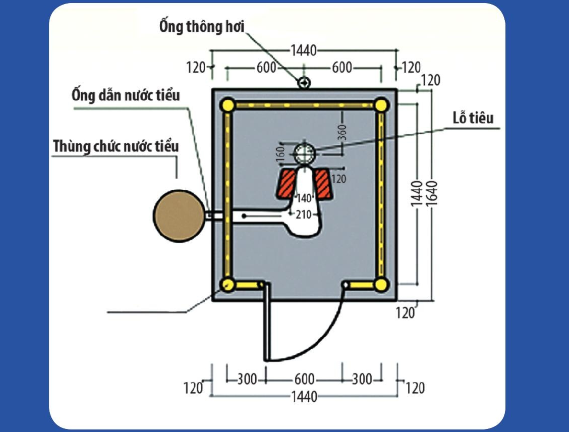 Thiết kế nắp nhà tiêu, vị trí gắn phần thân, ống thông hơi
