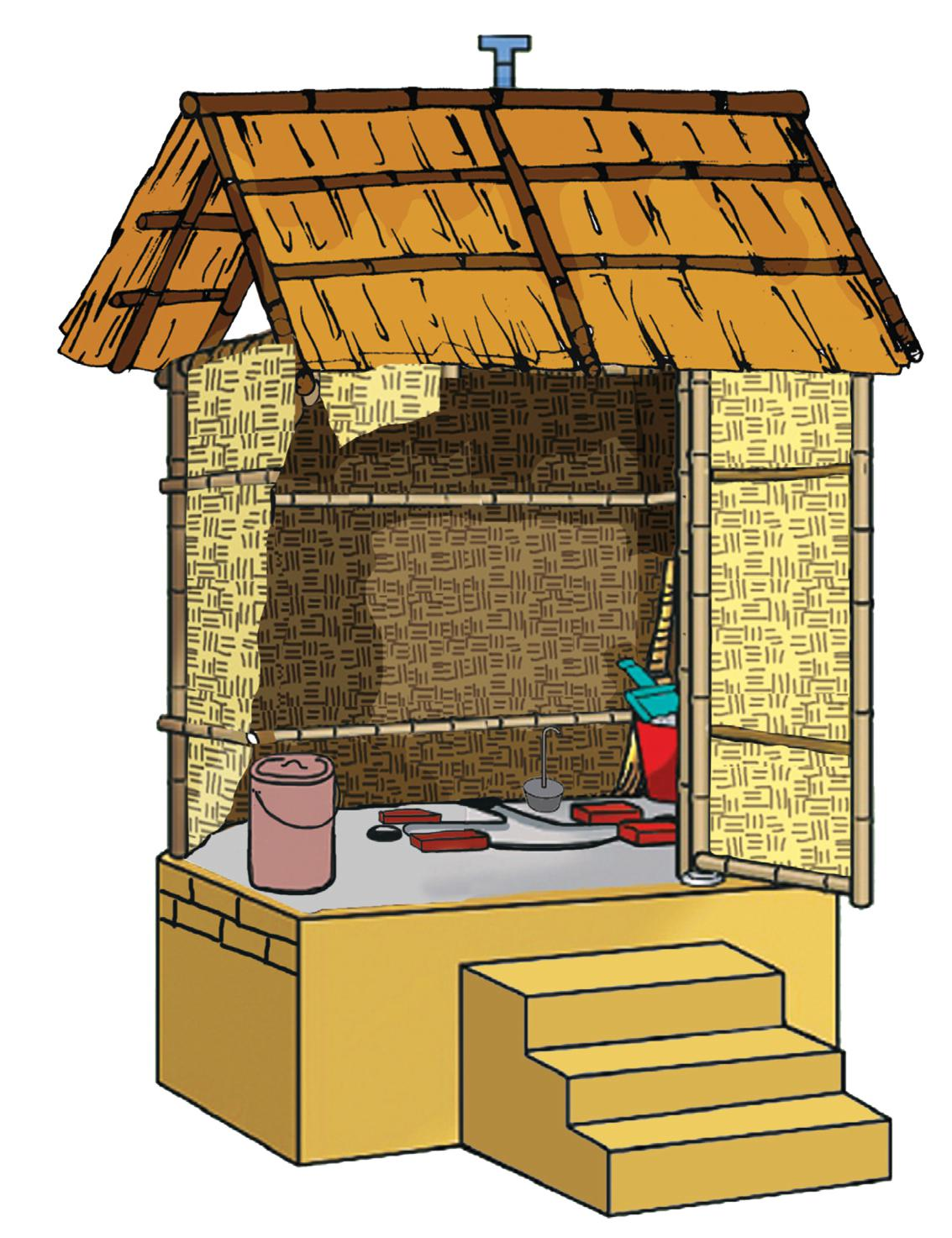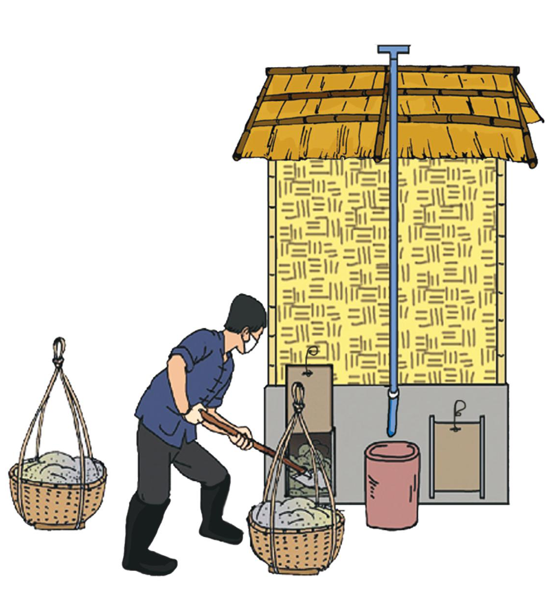 Thân nhà tiêu xây dựng bằng tranh, tre, nứa, lá.