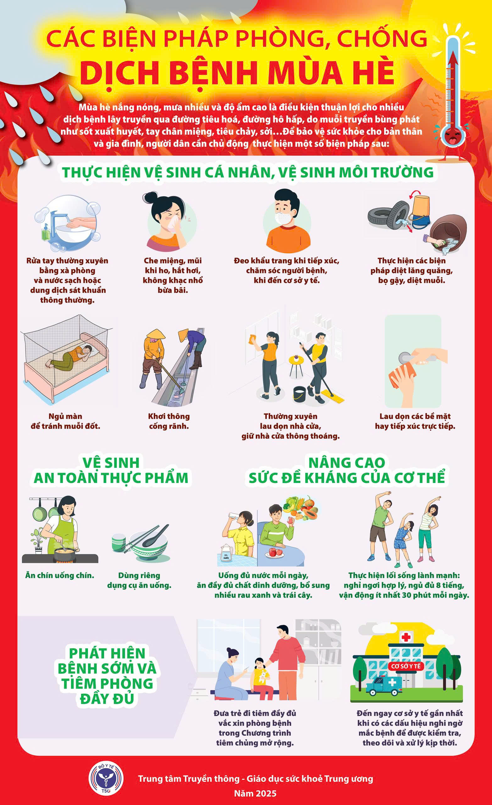 Infographic về các biện pháp phòng, chống dịch bệnh mùa hè (Nguồn: TTTT-GDSKTƯ).