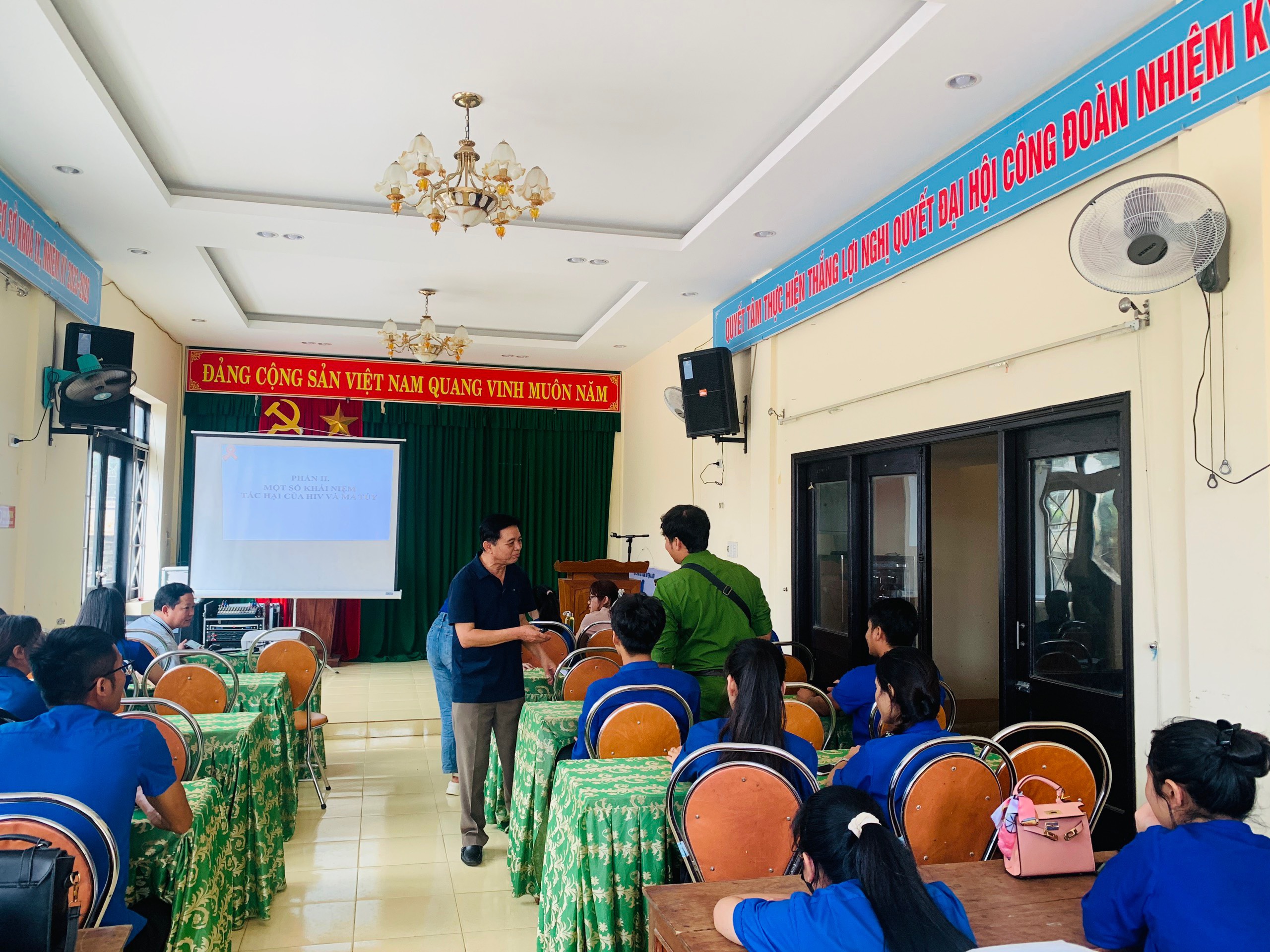 Thực hiện kế hoạch hoạt động năm 2024, Trung tâm Kiểm soát bệnh tật tỉnh phối hợp với Huyện Đoàn huyện A Lưới tổ chức Tập huấn kiến thức cơ bản về phòng, chống HIV/AIDS và kỹ năng truyền thông phòng, chống HIV/AIDS cho cán bộ Đoàn tại huyện A Lưới. Tham gia buổi tập huấn có bà Lê Thị Lệ Thủy - Phó Bí thư huyện đoàn A Lưới, cùng học viên là các cán bộ đoàn xã, thị trấn và đoàn viên trên địa bàn huyện.