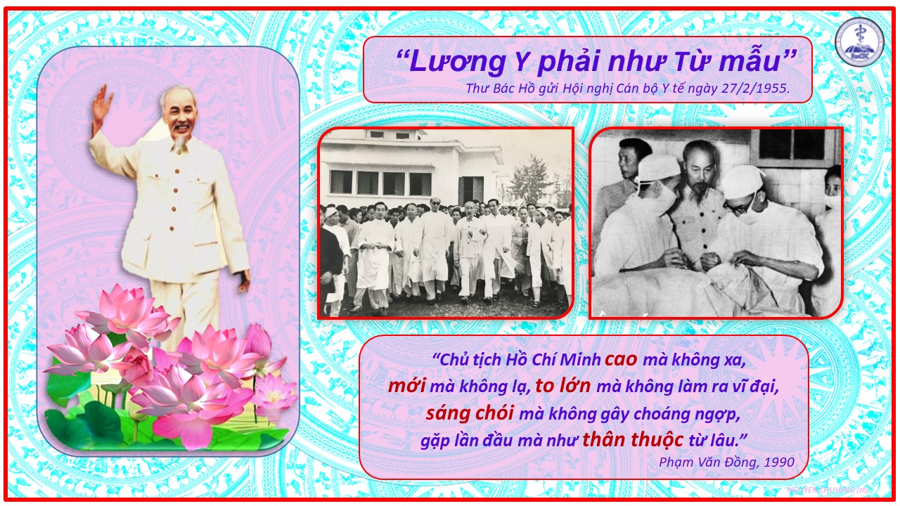 Nhớ lời Bác dạy, ngày nay trong xu thế phát triển và hội nhập, tư tưởng của Bác Hồ và những lời dặn trong Di chúc của Người về công tác y tế và sức khoẻ, là kim chỉ nam, là bài học quý báu, là ngọn đèn soi đường, chỉ lối, là động lực để những người làm công tác Y tế luôn phấn đấu, nỗ lực hoàn thành tốt nhiệm vụ bảo vệ sức khỏe của nhân dân. Những con người đã và đang làm sáng mãi phẩm chất cao quý theo lời dạy của Bác “Lương Y phải như Từ mẫu”, xứng đáng với tình cảm cao quý, tốt đẹp mà Bác Hồ dành cho ngành Y tế Việt Nam.../.