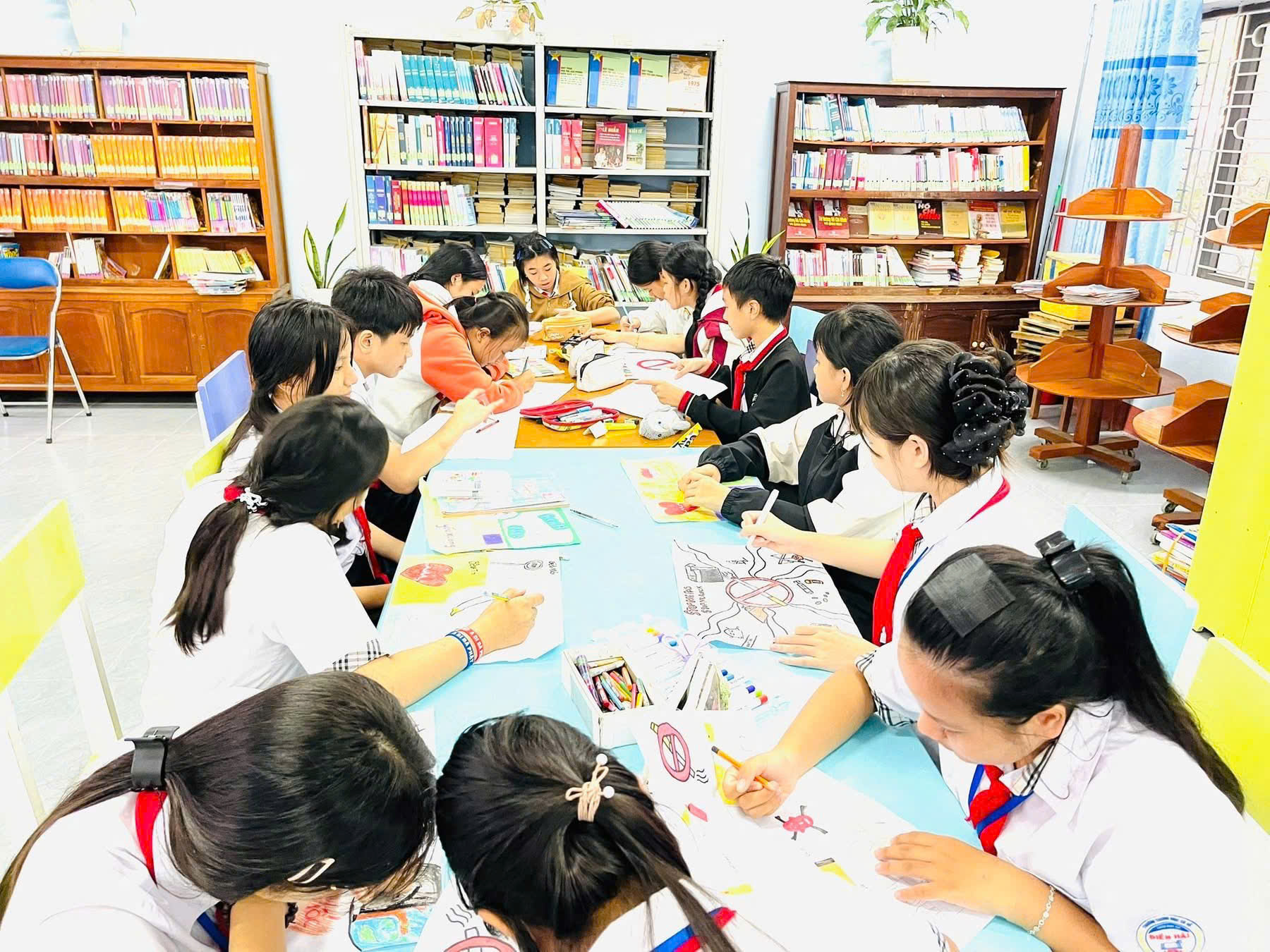Các em học sinh tích cực hưởng ứng tham gia Cuộc thi vẽ tranh do trường phát động.