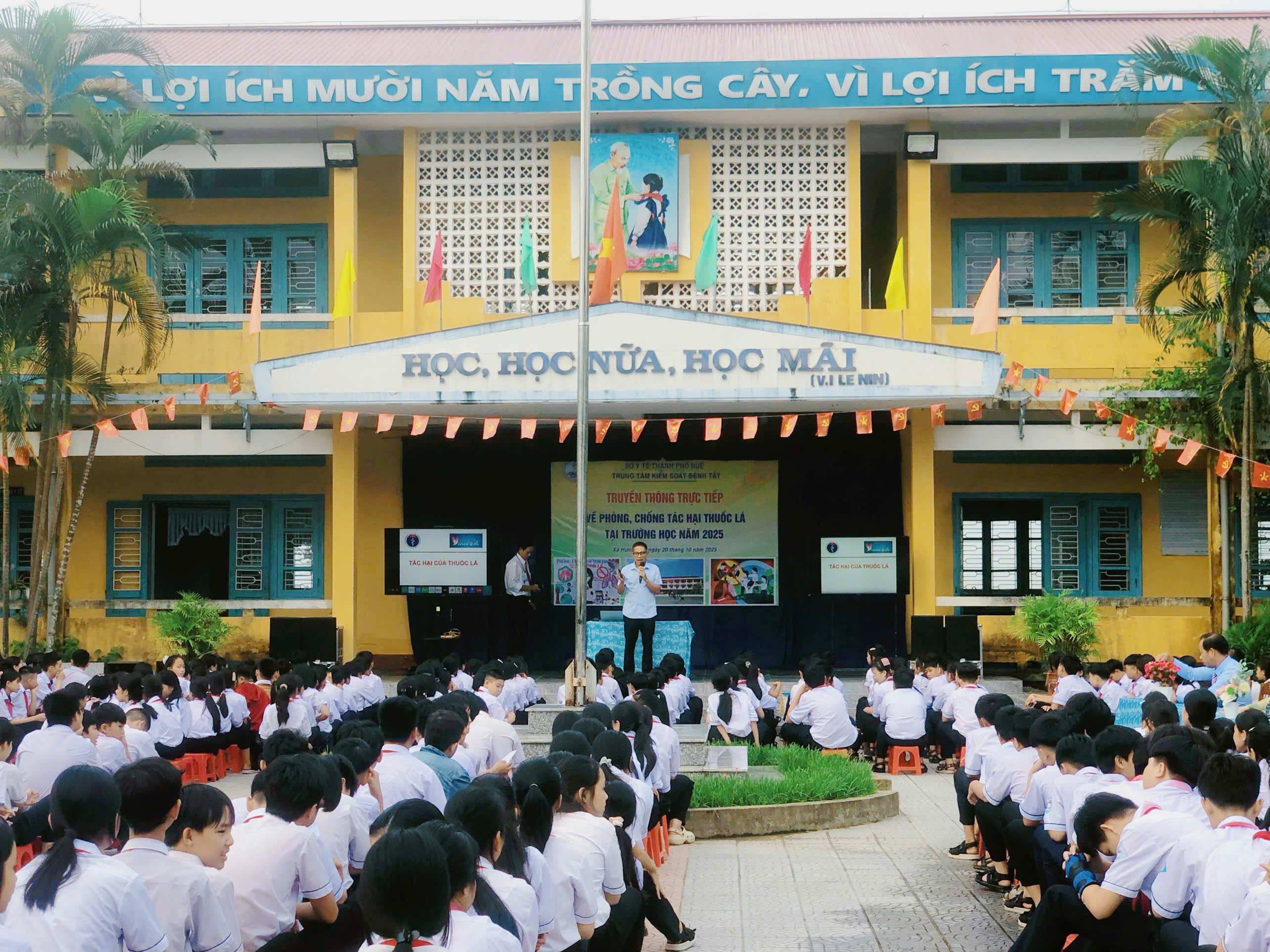 Trung tâm Kiểm soát bệnh tật thành phố Huế tổ chức truyền thông trực tiếp về phòng, chống tác hại thuốc lá tại trường THCS Lộc Bổn, THCS Lộc Sơn năm 2025.