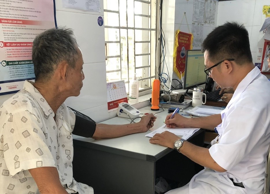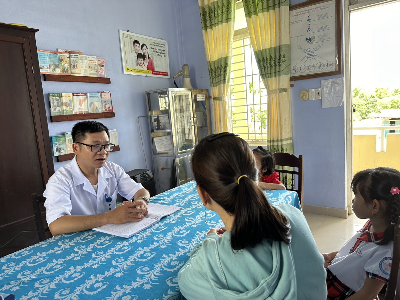 Bác sĩ Trần Ngọc Quảng, Trưởng Trạm Y tế Phú Gia tư vấn cho người dân đến khám