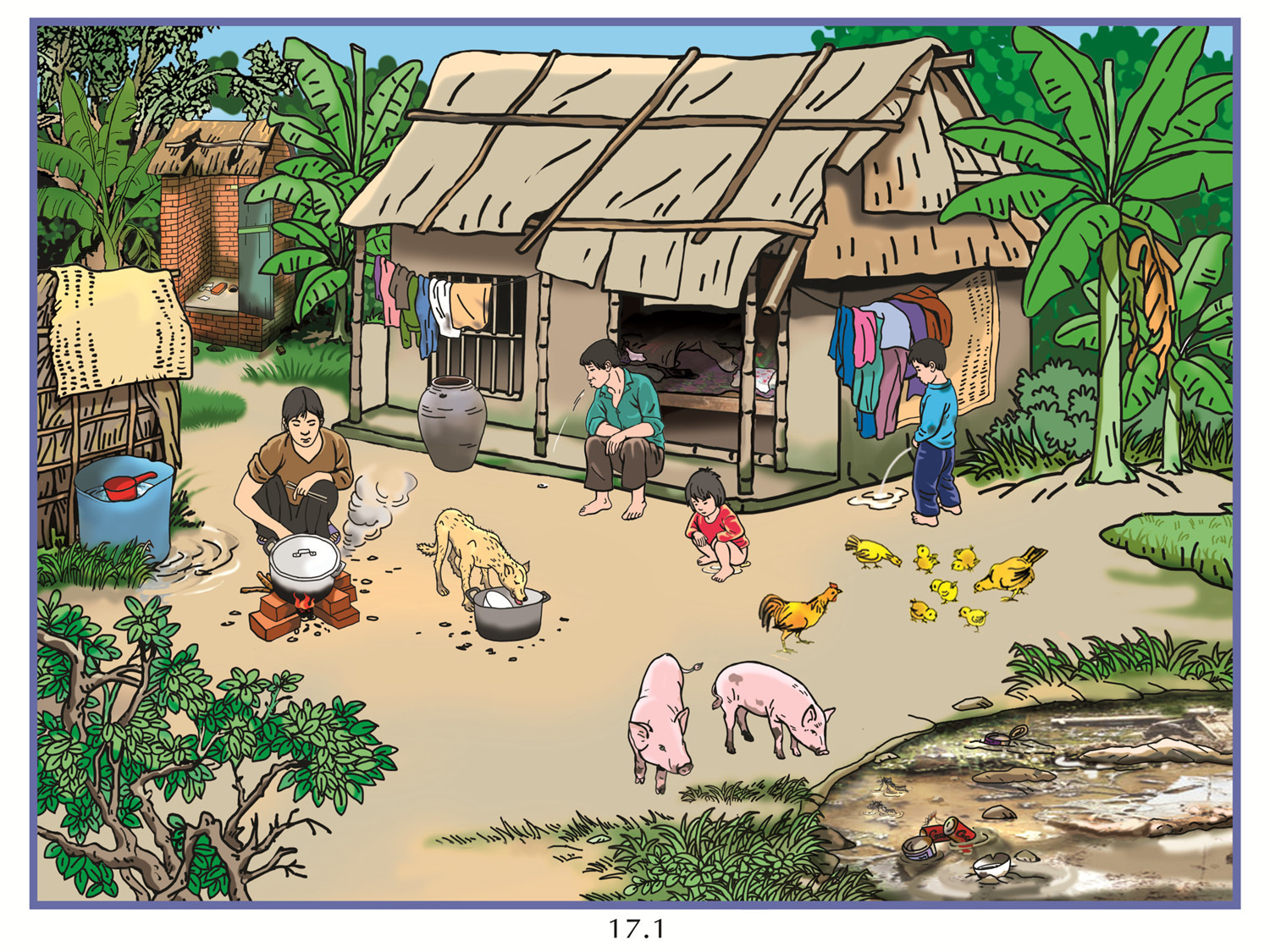 Môi trường xung quanh bị ô nhiễm bởi chất thải của con người, rác thải, phân gia súc, khói bếp