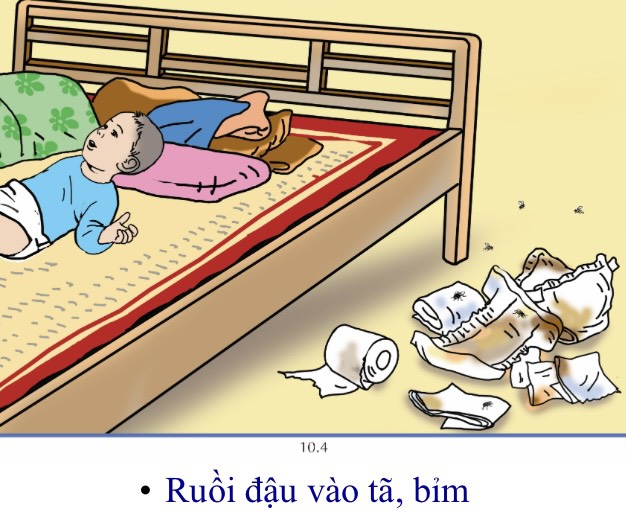 Ngăn chặn sự sinh sản của ruồi, che đậy thức ăn tránh ruồi.