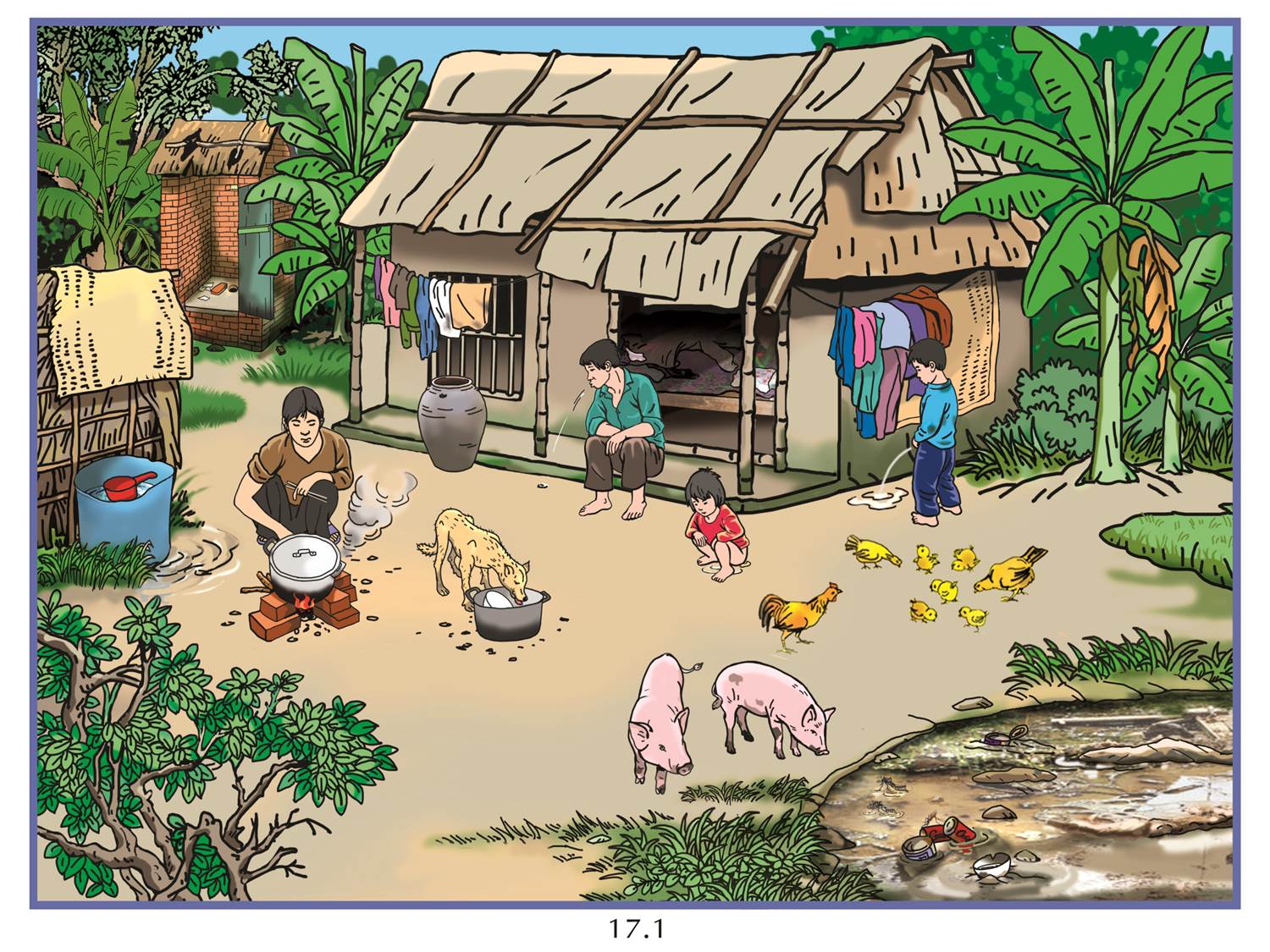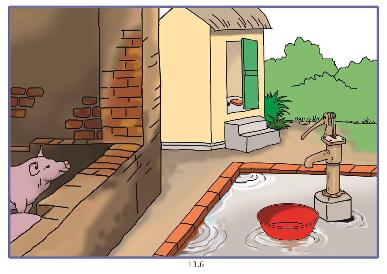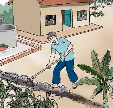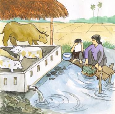 Giếng nước gần chuồng lợn, nhà tiêu