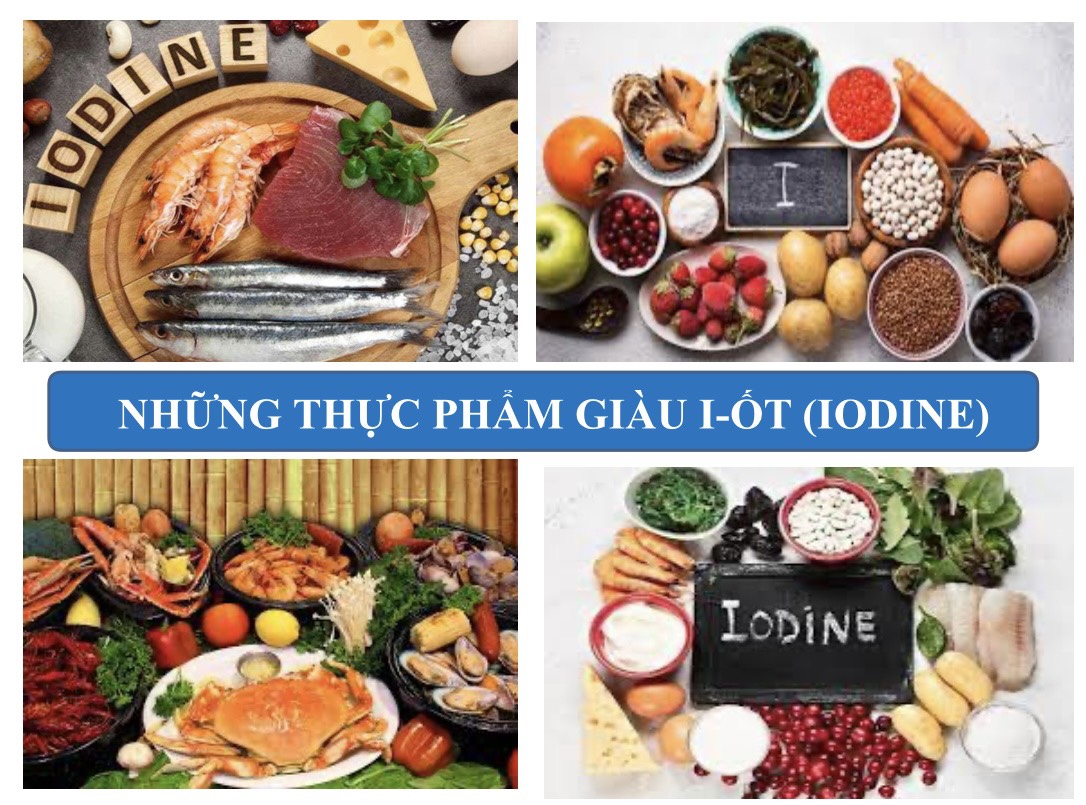 1. Thiếu Iốt gây nên bệnh Bướu cổ: Việt nam nằm trong vùng thiếu iốt, nhiều năm trước đây, tình trạng Bướu cổ thường gặp ở các vùng miền núi. Tuy nhiên thực tế thiếu iốt tồn tại ở tất cả các địa phương trong cả nước, không kể miền núi, thành thị hay vùng đồng bằng, ven biển. Iốt được dự trữ trong nước biển, từ biển, iốt theo hơi nước bốc lên được đưa vào đất liền, mưa bổ sung nguồn iốt cho đất, nhưng cũng chính mưa lũ gây ra nạn xói mòn làm trôi iốt ra biển. Thiếu iốt sẽ gây giảm khả năng trí tuệ, giảm chỉ số thông minh, chậm phát triển thể chất, suy dinh dưỡng… Phụ nữ có thai/cho con bú, trẻ em là nhóm đối tượng có nguy cơ bị thiếu iốt cao. Thực phẩm vẫn là nguồn cung cấp iốt chủ yếu, nó có nhiều trong các loại: Rau chân vịt (còn gọi là rau bina hoặc cải bó xôi), rau cần, cá/cua/muối biển, sơn dược, cải thảo, trứng gà, rau cải xoong, khoai tây, bầu dục…