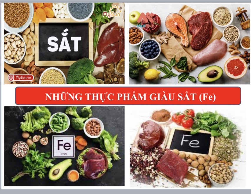 Các loại thực phẩm giàu Sắt gồm có: hàu, thịt đỏ, gan/lòng động vật, đậu gà, các loại ngũ cốc, hạt bí ngô, hạt diêm mạch, đậu phụ, sô-cô-la đen…
