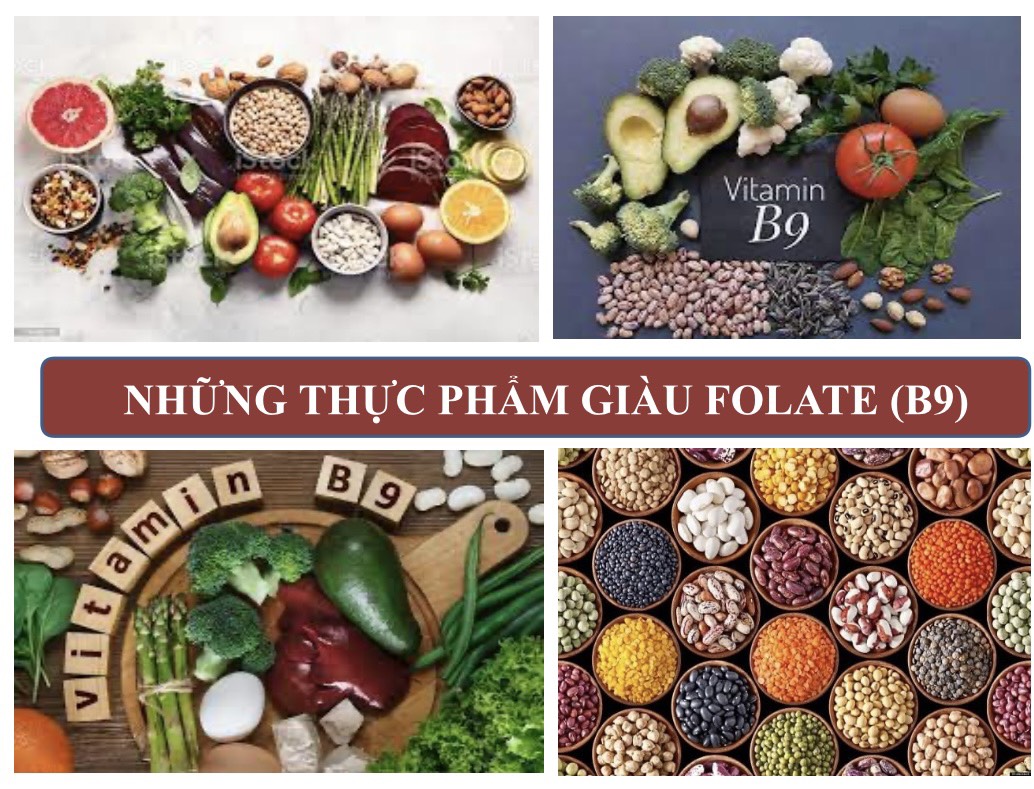 Nguồn thực phẩm bổ sung Folate tự nhiên gồm: các loại đậu, Măng tây, Rau chân vịt, Súp lơ, Bơ, Trứng gà, gan heo…